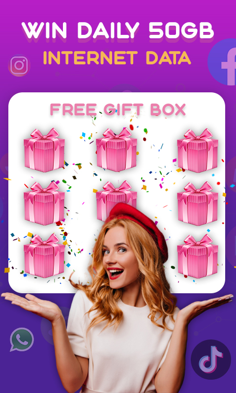 Enjoy free data 100 GB data internet 4g, 5g, and money rewards and win from our make money and free data app! Your lucky day may be right around the corner. Win Real money rewards and 25 GB data recharge with new chances every day with a lucky match.