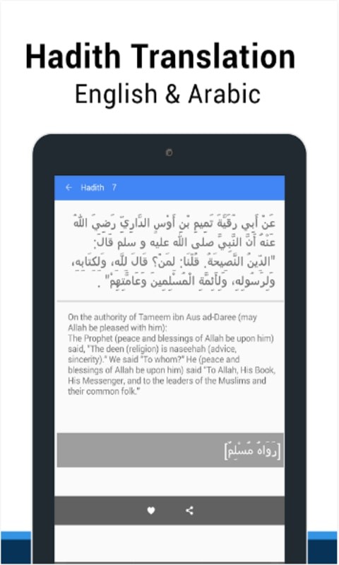 • Bookmark option to mark your favorite Hadith for quick access