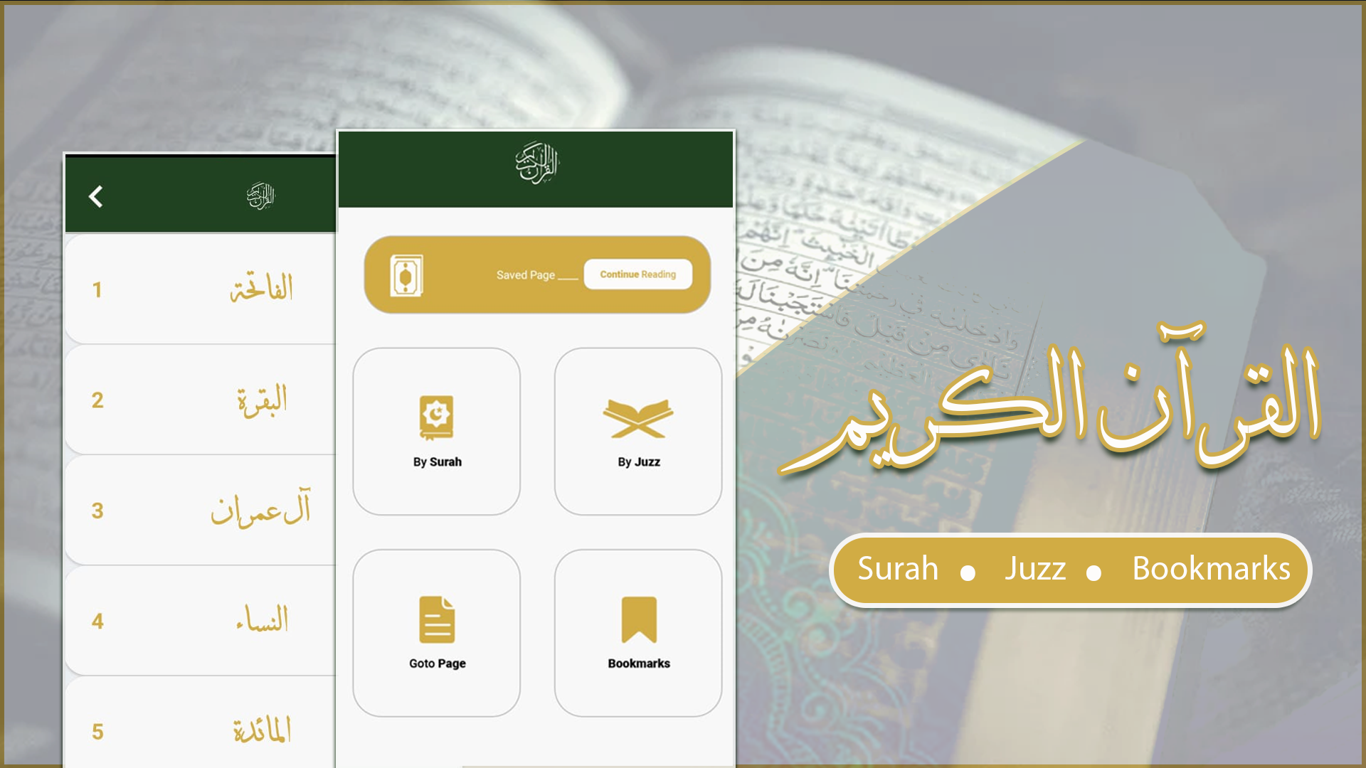 Al Quran Sharif app makes sure that everyone can recite Quran Sharif with comfort so it has surah and Juzz list options from where everyone can reach their desired surah of Juzz in Quran Majeed quickly. It has both surah and Juzz list equipped with custom Goto page option as well for more ease for the reciter of Al Quran.