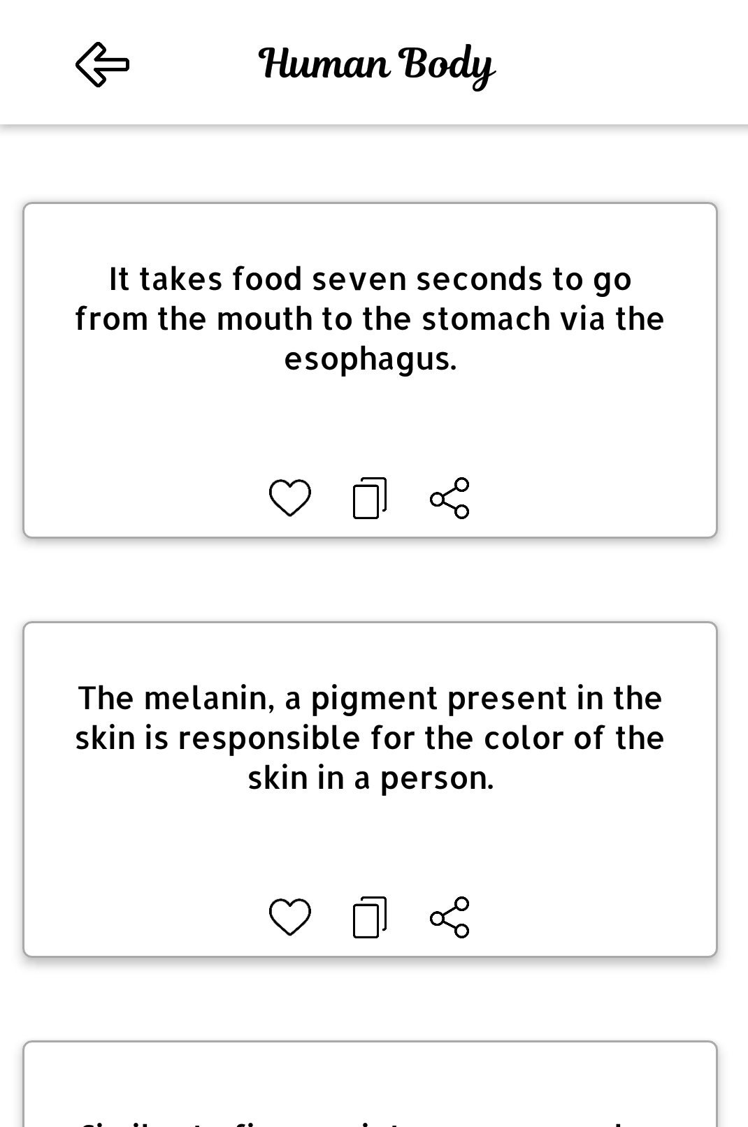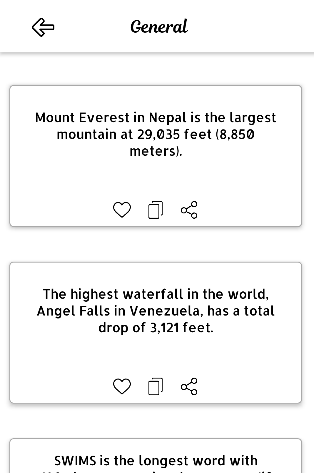 With more than 20,000+ Facts, you will find yourself easily getting your daily dose of various information in one single app. Within this app there are all kinds of true and amazing facts that you may not know. The facts are organized in various categories for easy access. With this app you can learn a lot of new facts and get smarter.