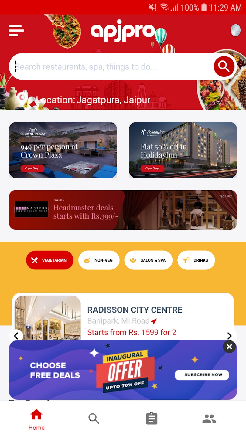 We provide unbelievable deals in F&B, hospitality, grooming and fitness industry all around Jaipur. To know more visit our website, or download the APJPRO app.