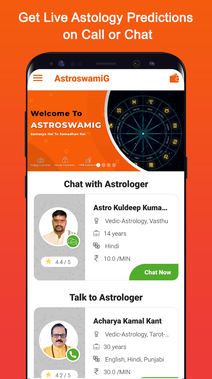 Astroswamig app for online astrology predictions connects you with best astrologers instantly on call/chat 24*7 for all your astrology needs.