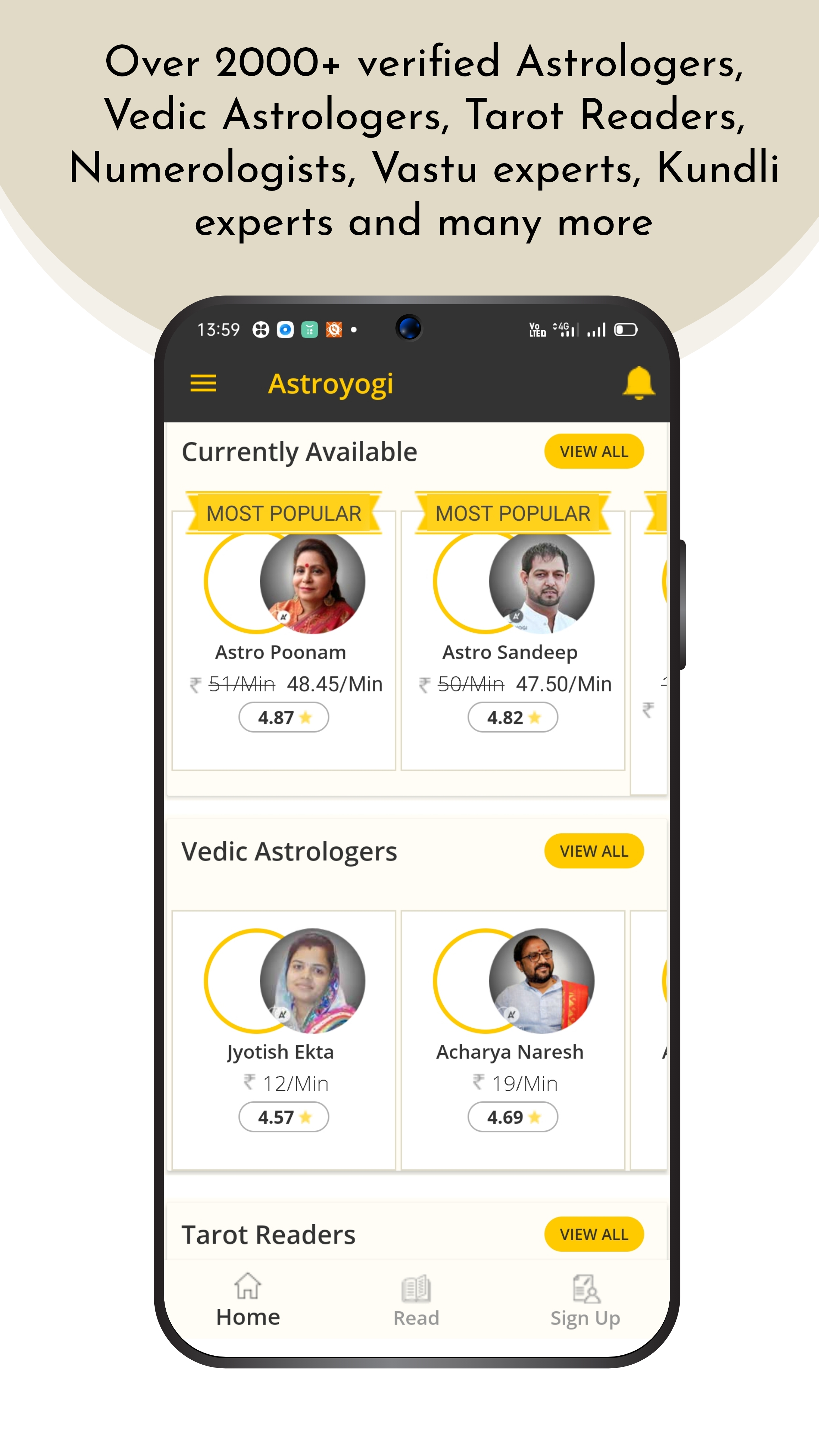 2. Pick among expert astrologers, numerologists, tarot card readers, Kundli astrologers, Vedic astrologers, Vastu Consultant, Nadi Astrologer, KP astrology experts, and, among others, on our live astrology app.
