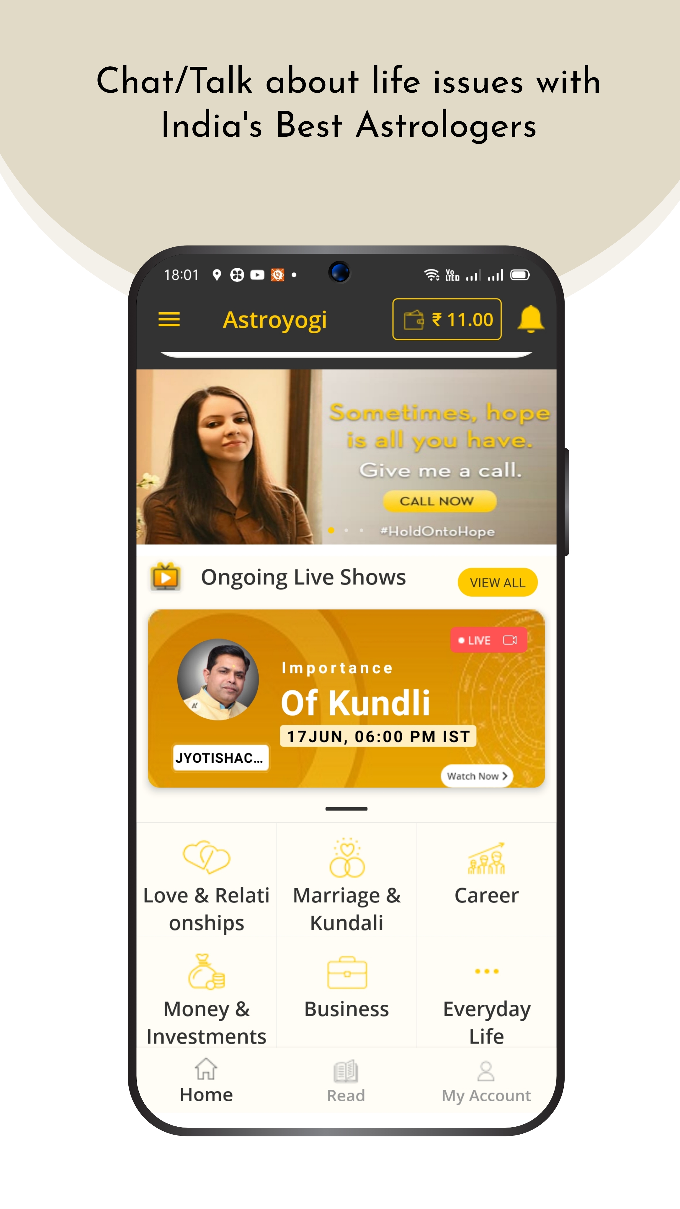 Get unlimited access to free horoscopes, Live shows, astrology predictions, transit predictions and new free Kundli on your smartphone with the Astroyogi online astrology app.