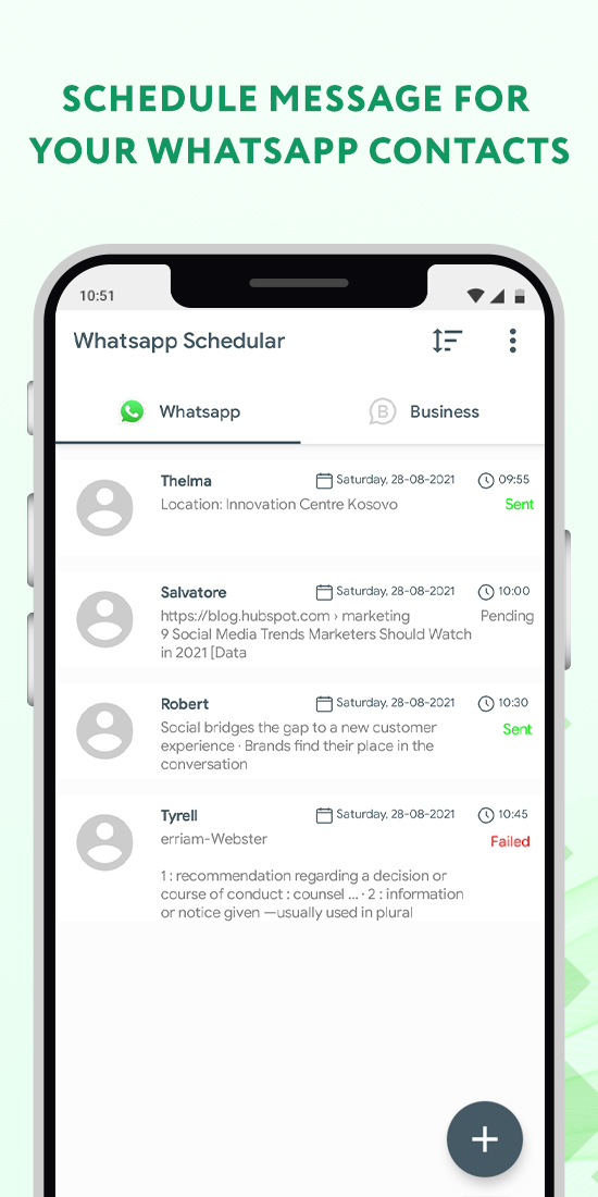 Sit & schedule text messages to various people on your selected dates without a miss.
