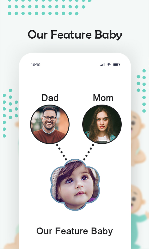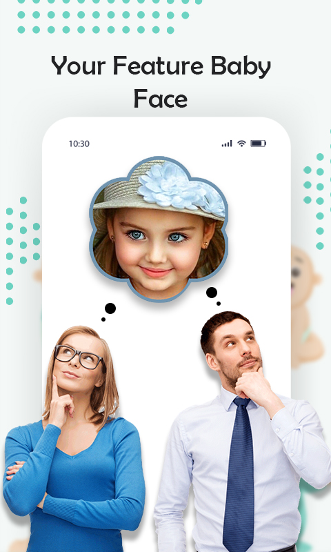 Future baby is an app to make a future baby face prediction, baby face generator app analyzes and scans parents' facial features to get a future baby face photo. Baby generator app helps you to get a suitable name for your future baby. In baby predictor app you can see both boy's and a girl's future baby face.