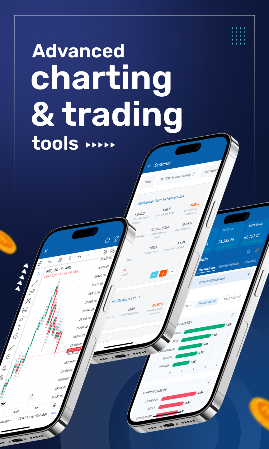 Welcome to Bajaj Broking, the ultimate destination for all your trading and investment needs. Discover the best trading app that simplifies the stock market, providing you with seamless access to share markets and easy management of your investments. Features: