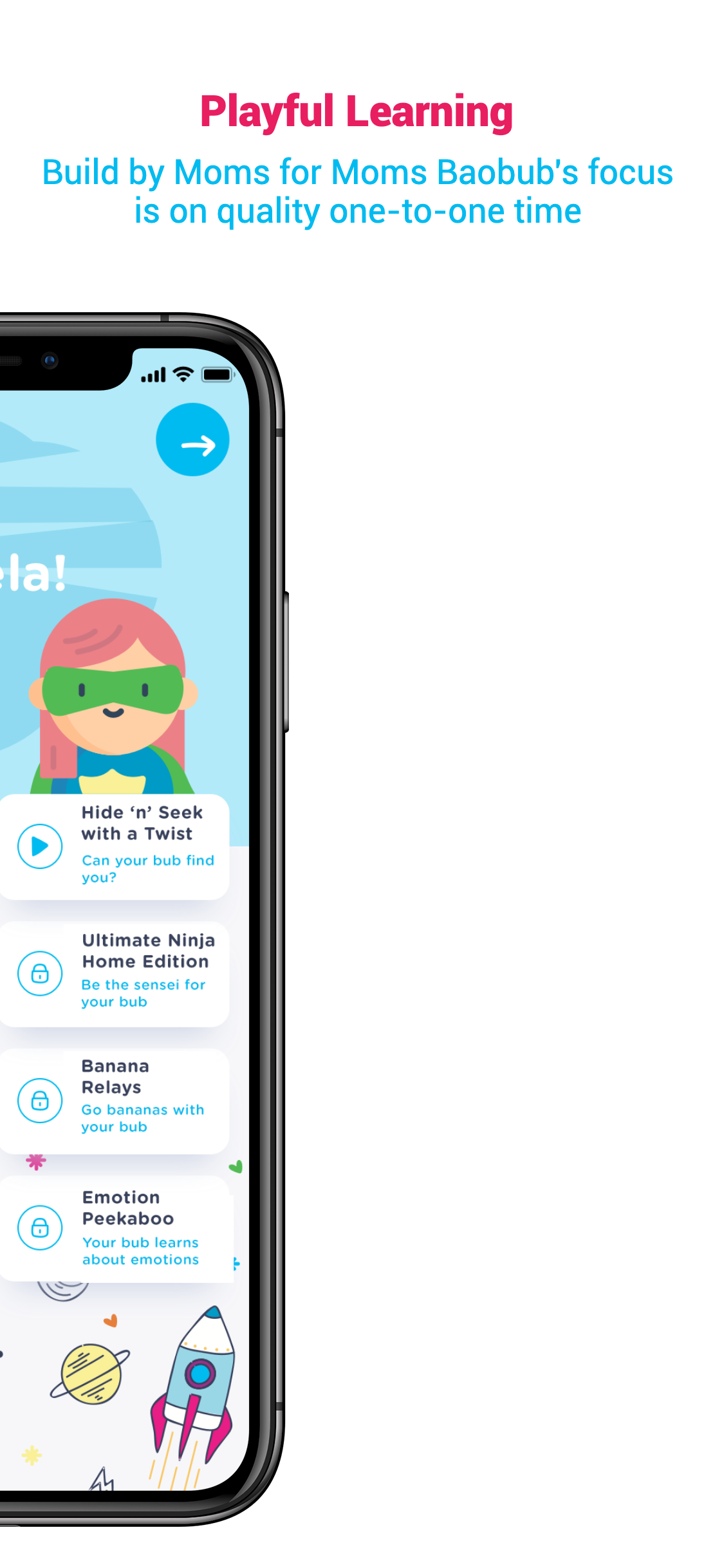• Useful reminders to nudge you to play with your little one, specifically designed to work around your busy schedule