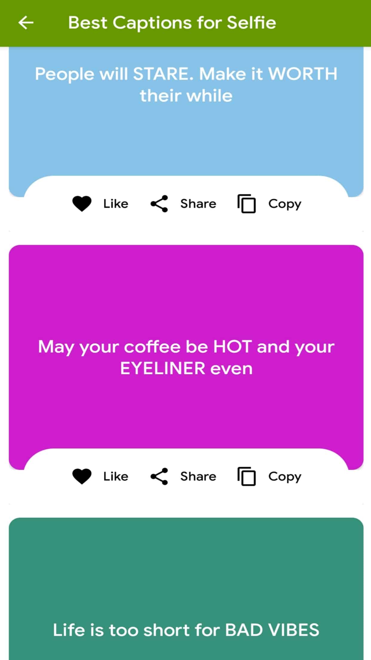 Our app on Captions on Attitude brings you the best attitude captions, status in English for Instagram, FB and Whatsapp. Express yourself with different kind of attitude captions like attitude for boys, attitude for girls, cool attitude, latest attitude status, selfie captions in 2020. The captions are very easy to copy and share. You can use this attitude captions on various social platform like Instagram, Facebook DP etc.