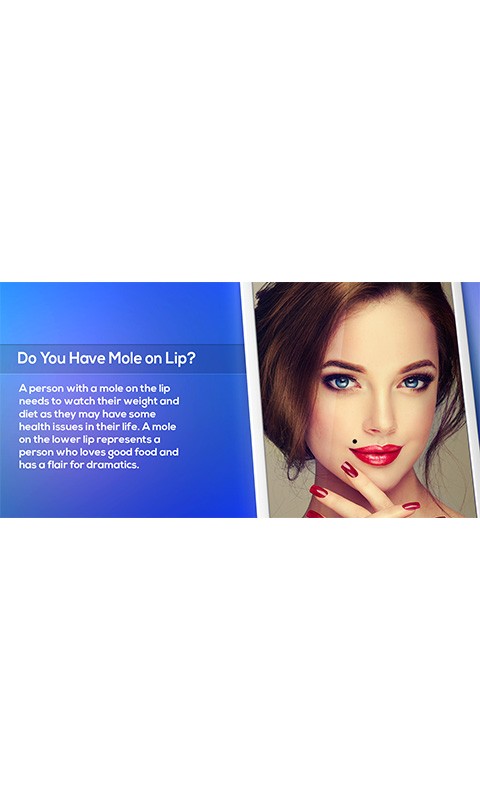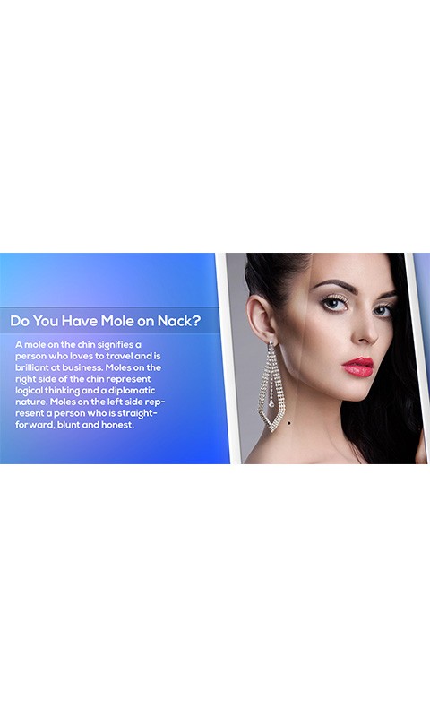 Best Moles Astrology app helps you to know what your body moles say about your personality. The study of moles is called “Moleosophy”