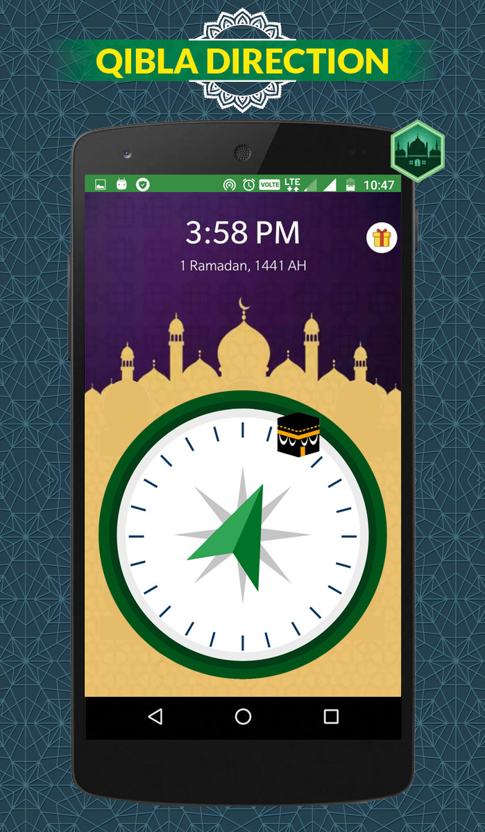 5. Qibla Finder - For Mecca Directions, use the animated and beautiful Qibla Compass to find accurate direction from your location. (kaaba).