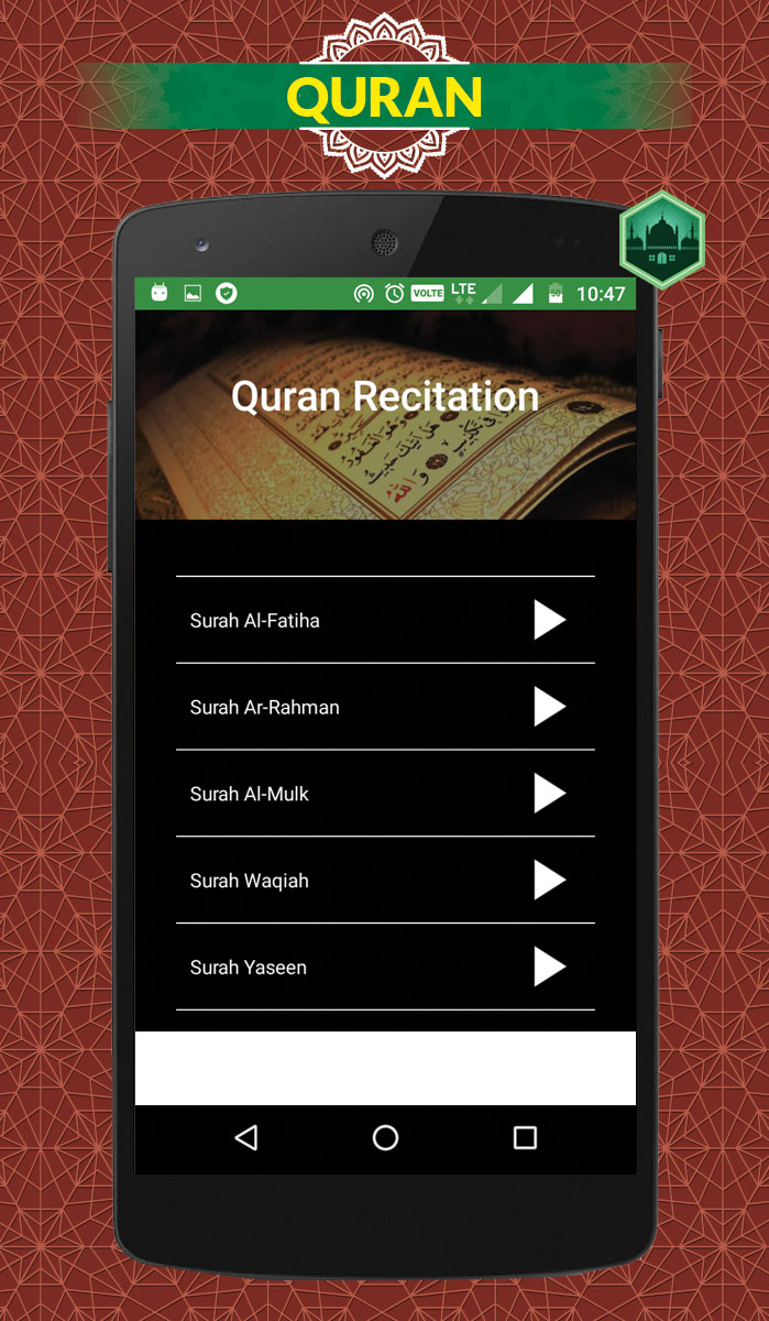 4. Quran - Audio recitations of The Holy Quran. MP3 for Surah Al-Fatiha, Surah Ar-Rahman, Surah Al-Mulk, Surah Waqiah, Surah Yaseen of Koran available in offline mode too.
