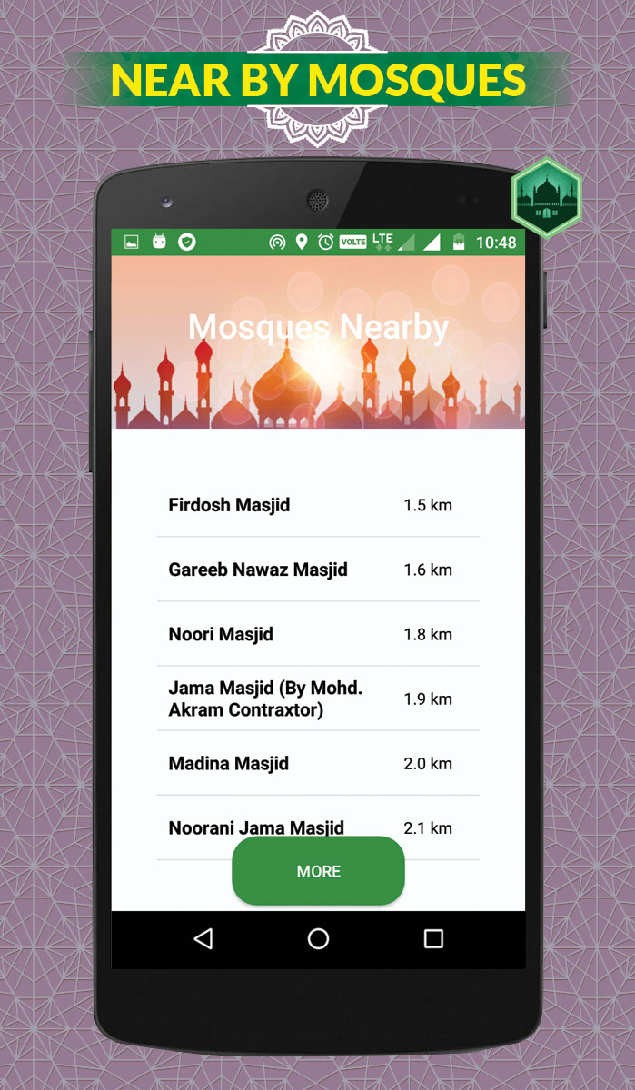 7. Mosques (Masjid) Near You -- Find Muslim mosques / Masjid near your current location. Mosques are listed in the order of distance from you. Bonus Feature - Get driving directions by car, walking, driving, etc.