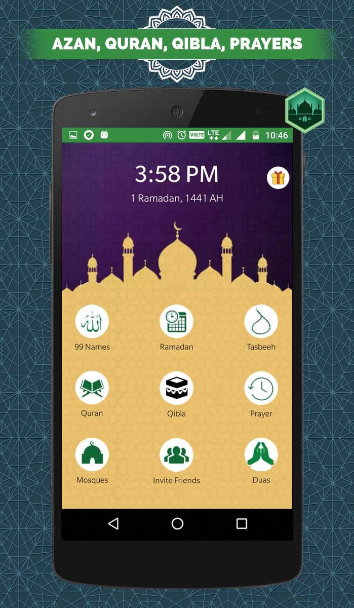 This app is for all Muslims and practitioner of Islamic Religion across the world. The app has holy Quran in English, Qibla Location & Direction Online, Prayers & Namaz Timings, Azan, Ninety Nine names of Allah, Ramadan Calendar, Tasbeeh Counter, Mosques Near you.