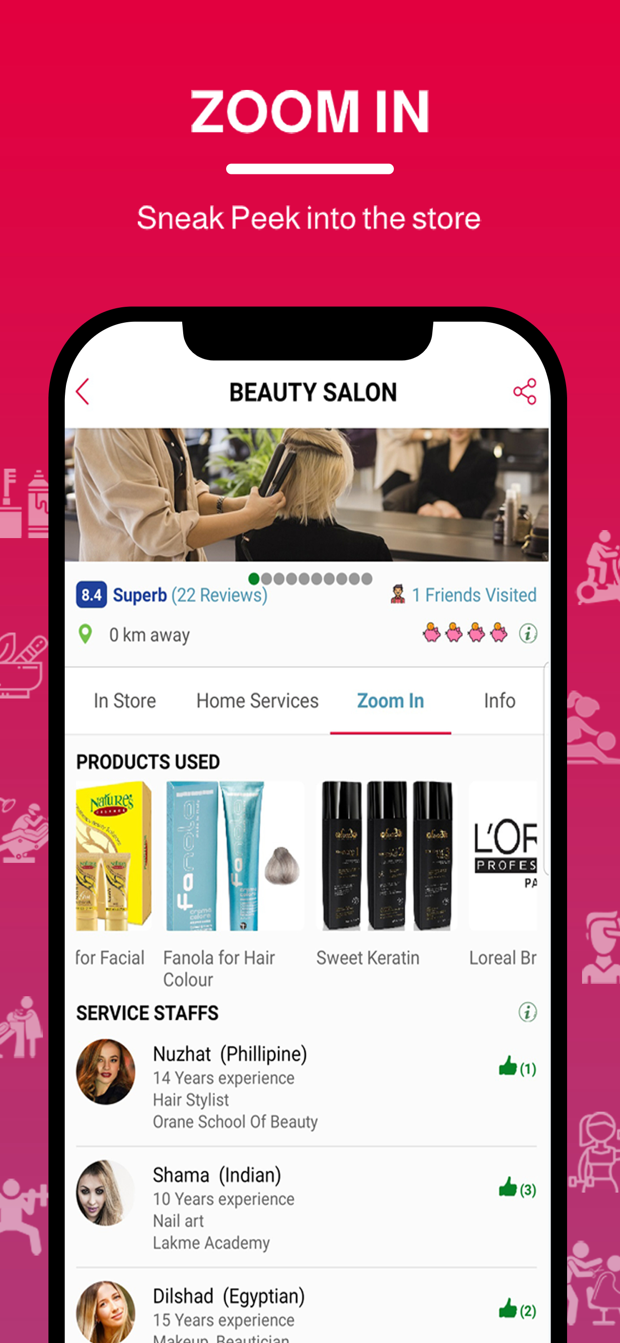 Embrace Change Made Easy – Seeing is believing and we believe in setting the expectations right. Use the ‘Zoom In’ feature to zoom inside your local beauty stores and clinics before visiting them. You will find details, such as the products used, staff competency, user ratings, etc. to make the right choice for your requirement.
