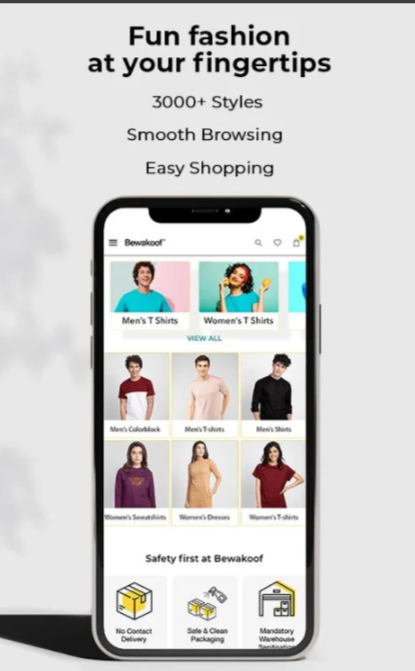 Bewakoof Online Shopping App, one of the leading shopping app in India, offers the best of trendy and youth-oriented fashion clothing & accessories for both men and women. Choose from a wide variety of t-shirts, joggers, shirts, dresses and mobile covers online. Our online store comprises of extensive clothing categories that feature eye-catching slogans and prints. We aim to keep you updated with contemporary fashion trends and enhance your online shopping experience. We have collaborations with leading brands like Marvel, WWE and Disney to provide you with a holistic catalogue of merchandise.