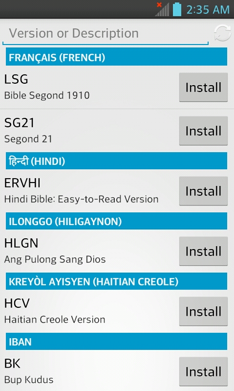 Il contient plusieurs versions de tous vos Bibles préférées et dans différentes langues, vous pouvez télécharger les versions et l'utiliser sans le besoin d'être connecté à Internet.