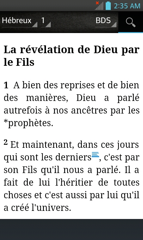 La Bible du Semeur - BDS (français), la Parole de Dieu à tout le monde, pas de connexion Internet nécessaire pour le fonctionnement.