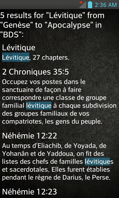 Plusieurs versions de Bibles ✝ (Bible Segond 21 Bible Segond 1910 Hispanoamericana BHTI Bible, New International Version Bible NIV, Amplified Bible (RVR60, RVR95, RVC), Version LSG Bible King James, et beaucoup d'autres).