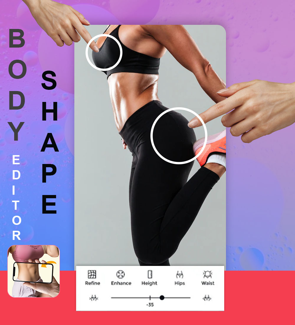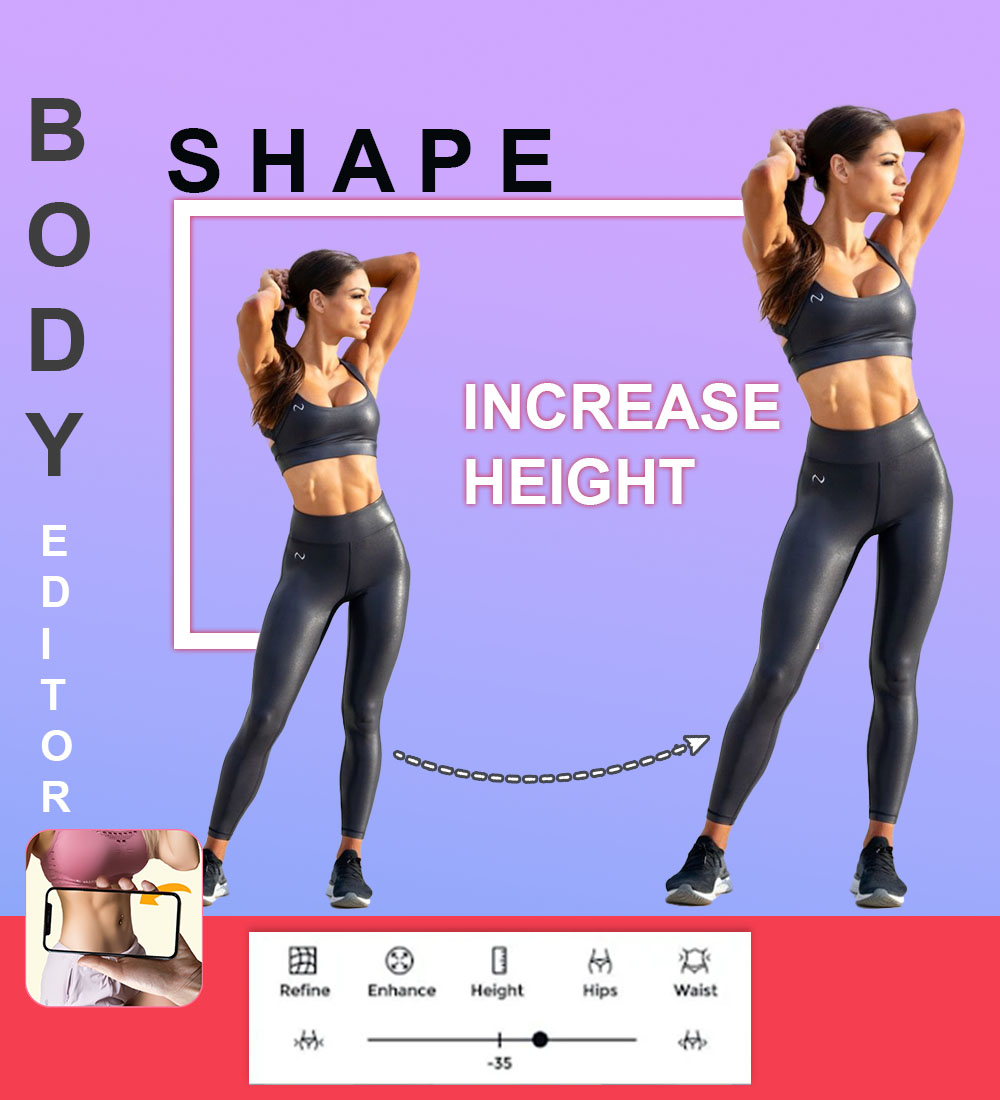 Full Body Editor - Girls Fit Body Photo Editor is an app for women body shaping and body editor for boys. full Body Camera for women app with great tools for large and small your body parts large breast, small breast, enhance hip, slim body and increase height or small your height on any one photo you want. is an app for boys body shaping and body editor for girls. With this Retouch BODY EDITOR - Slim Face Body Shape Editor tools, you can large and small your body parts large breast, small breast, enhance hip, slim face, slim body and increase height or small your height and make much more funny photos.