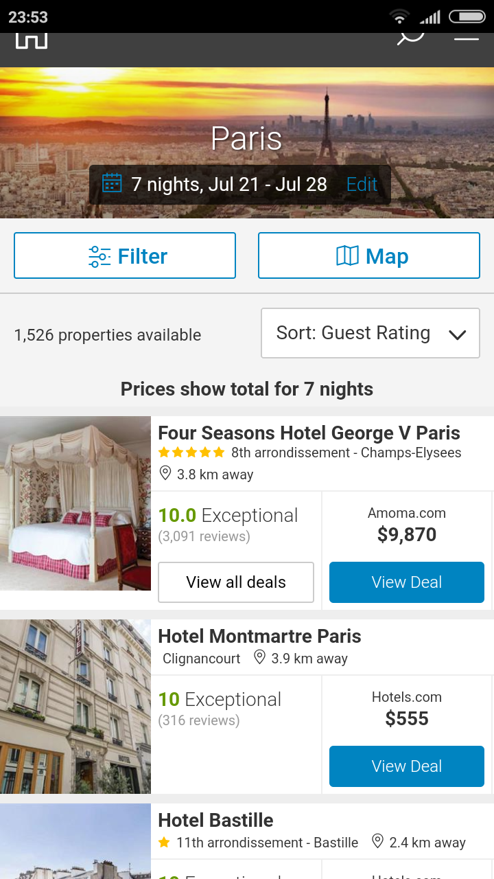 Tap a hotel of your liking and simply view guest ratings, a detailed description about the hotel and what it offers. See the exact location and book to get the best offers and hotel deals. Booking hotels has never been more convenient with our online hotel booking app!