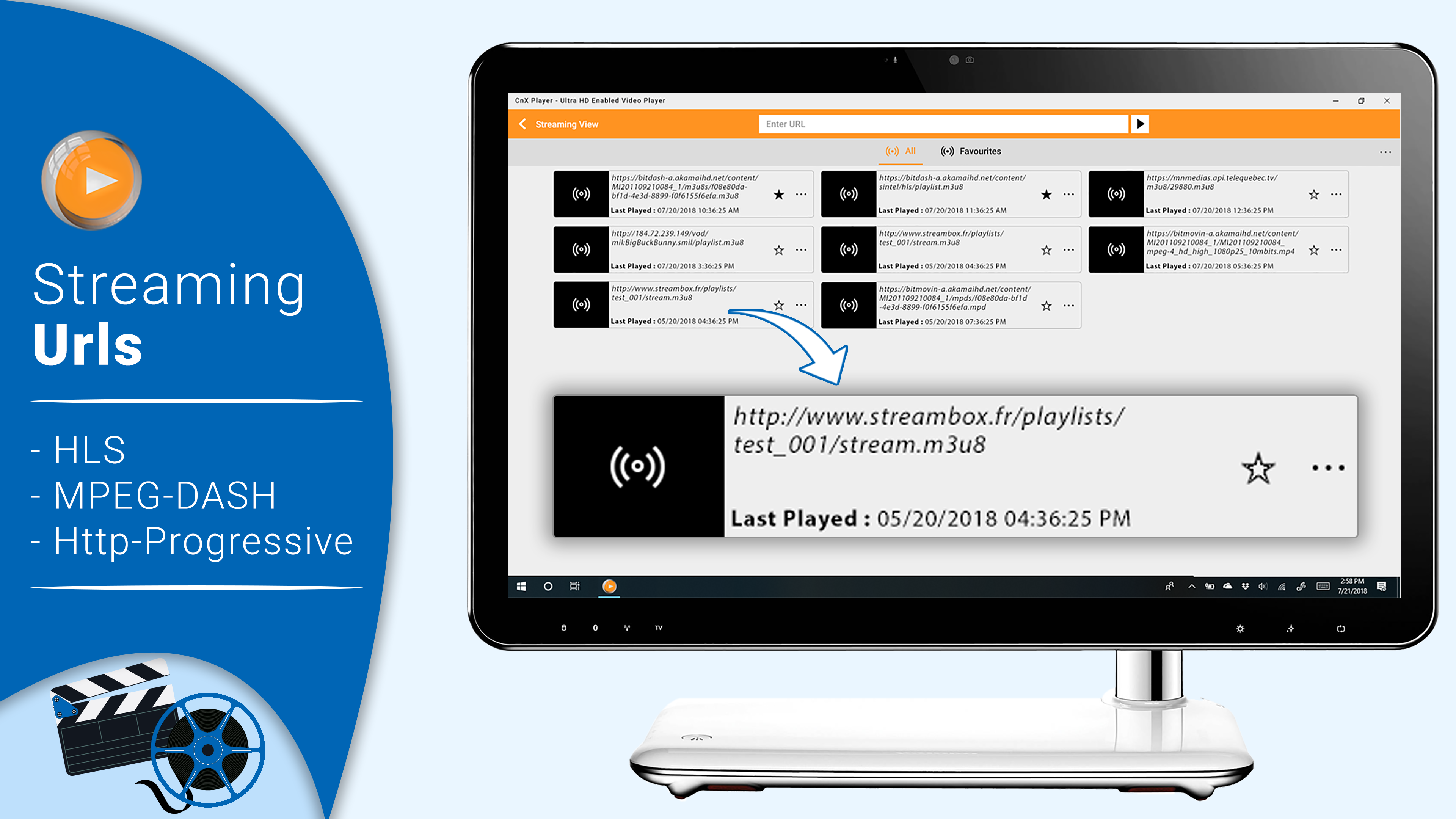 5. NETWORK STREAM Player : Play online videos including HLS, MPEG-DASH & HTTP Progressive network streams (URLs).
