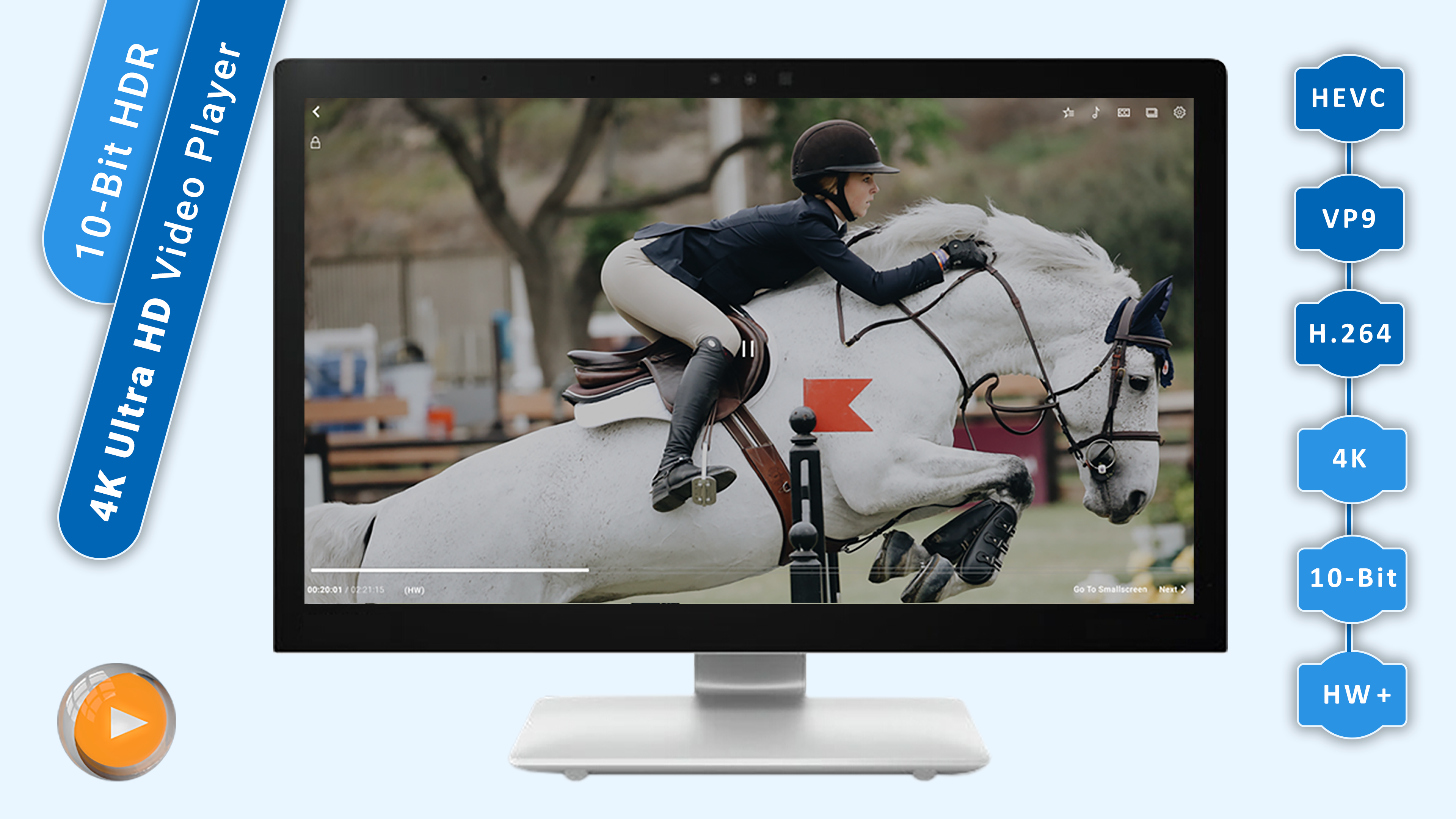 1. HIGH-PERFORMANCE PLAYBACK CORE: 4K Ultra HD Video Player - 2160p & Full HD 1080p videos Player of H.265 aka HEVC and H.264 aka AVC and VP9/VP8.
