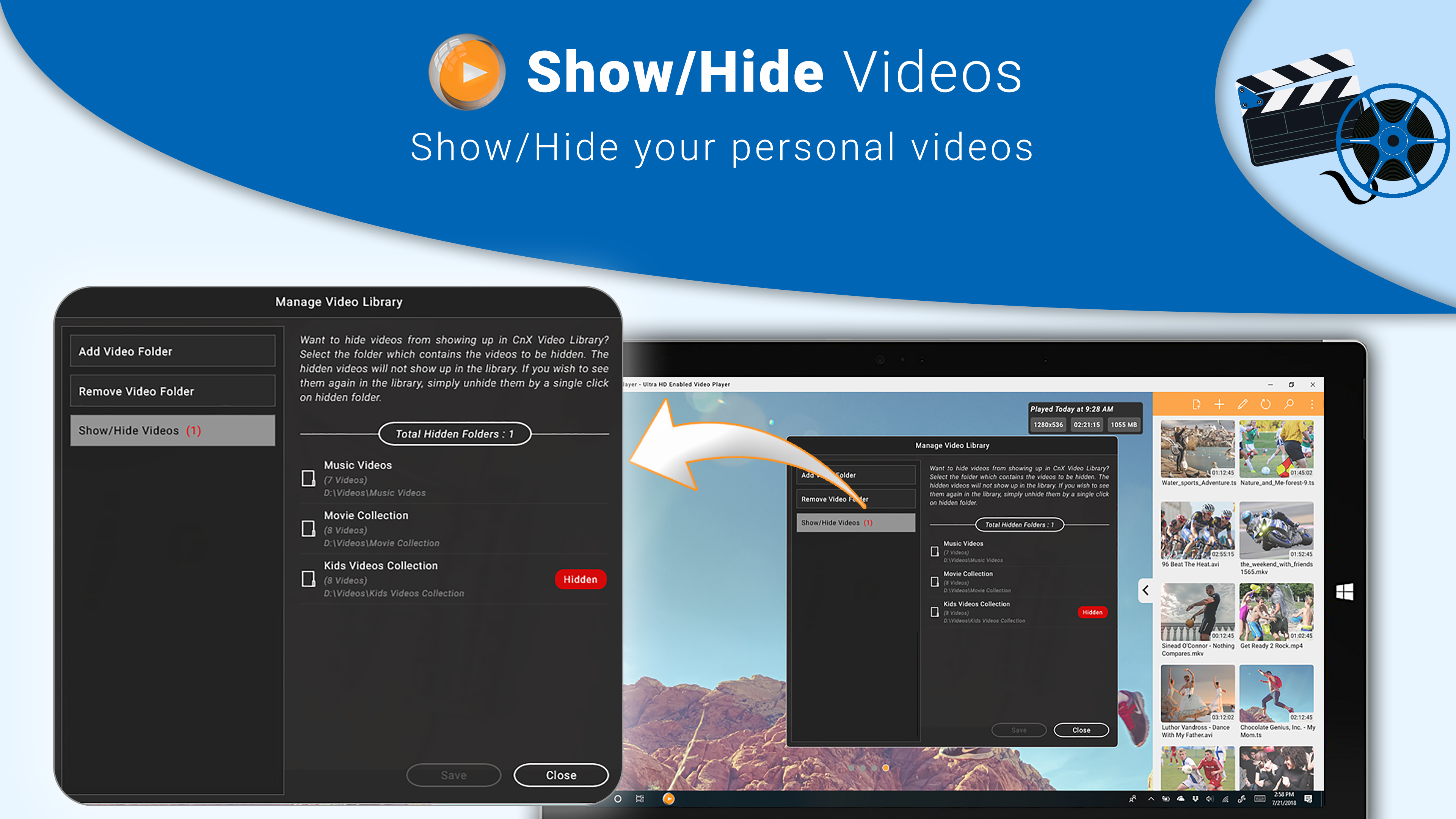 10. HIDE/SHOW VIDEOS: Choose which videos to be shown or hidden in the video gallery.