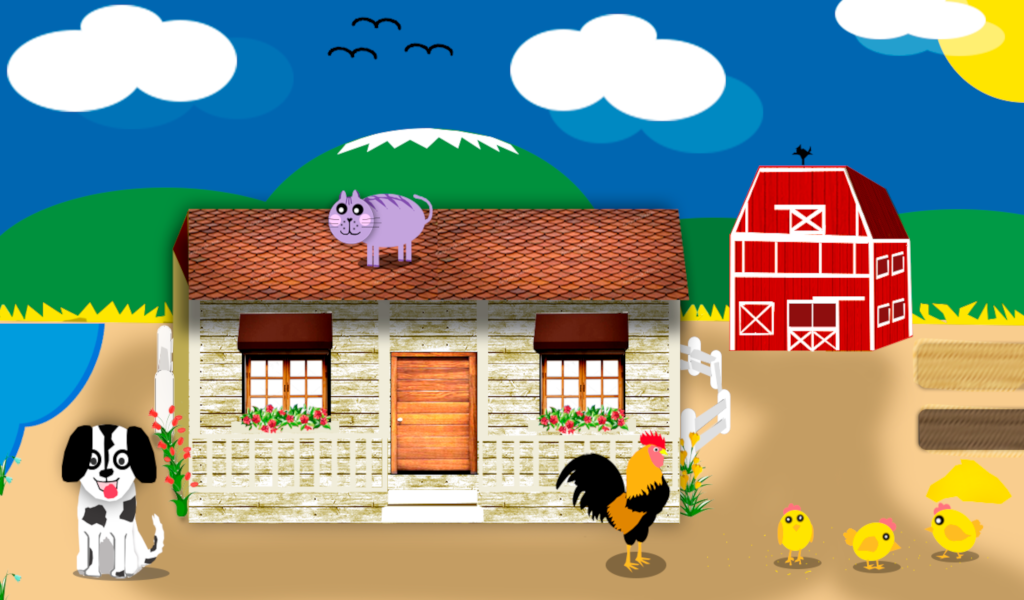 Discover with COCO the fox the sounds of farm animals. It is an interactive game where children can learn the real sounds that animals emit. Recommended for children over 1 year.