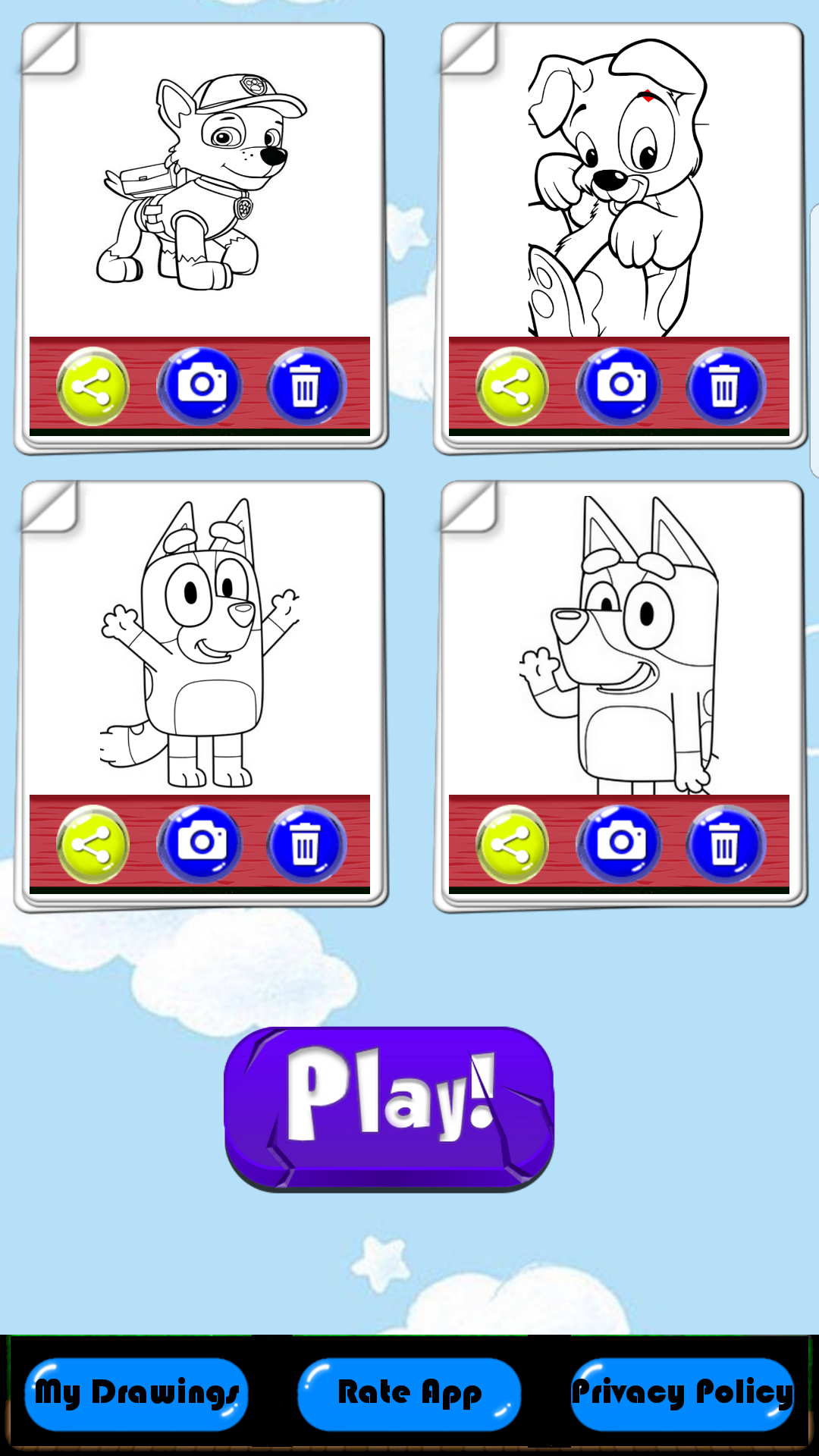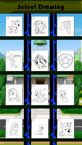 Coloring Kids Pups Patrol cartoon on Android. Start drawing colouring pages , Enjoy coloring the pictures of pups dog : chase and marshall, rocky, zuma, rubble, skye cartoon . Colouring for toddlers help your children to relax and feel better .