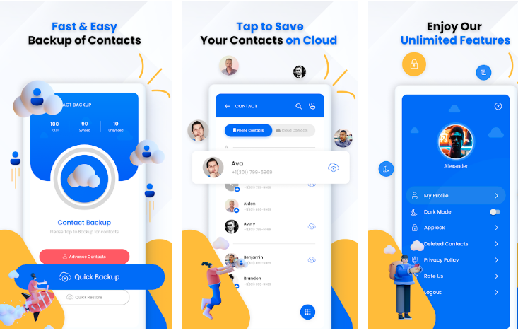 Download contacts backup and restore data to secure your contacts on cloud storage. Easy to create contacts backup and restore it anywhere and anytime or you can get all contacts on any other device too easily.