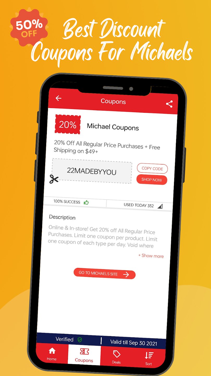You Will get the latest Coupons for Michael Crafts Store on the above listed categories - if Some of the michaels coupon code are missing then we will get them listed as soon as possible sine our team is working day and night to bring you all the deals.