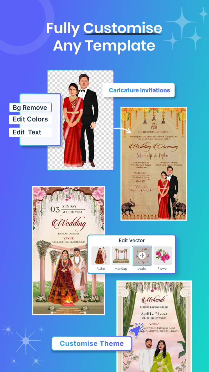 • Access canvas, Premium-Templates, Layout, images, Background, stickers, and elements.