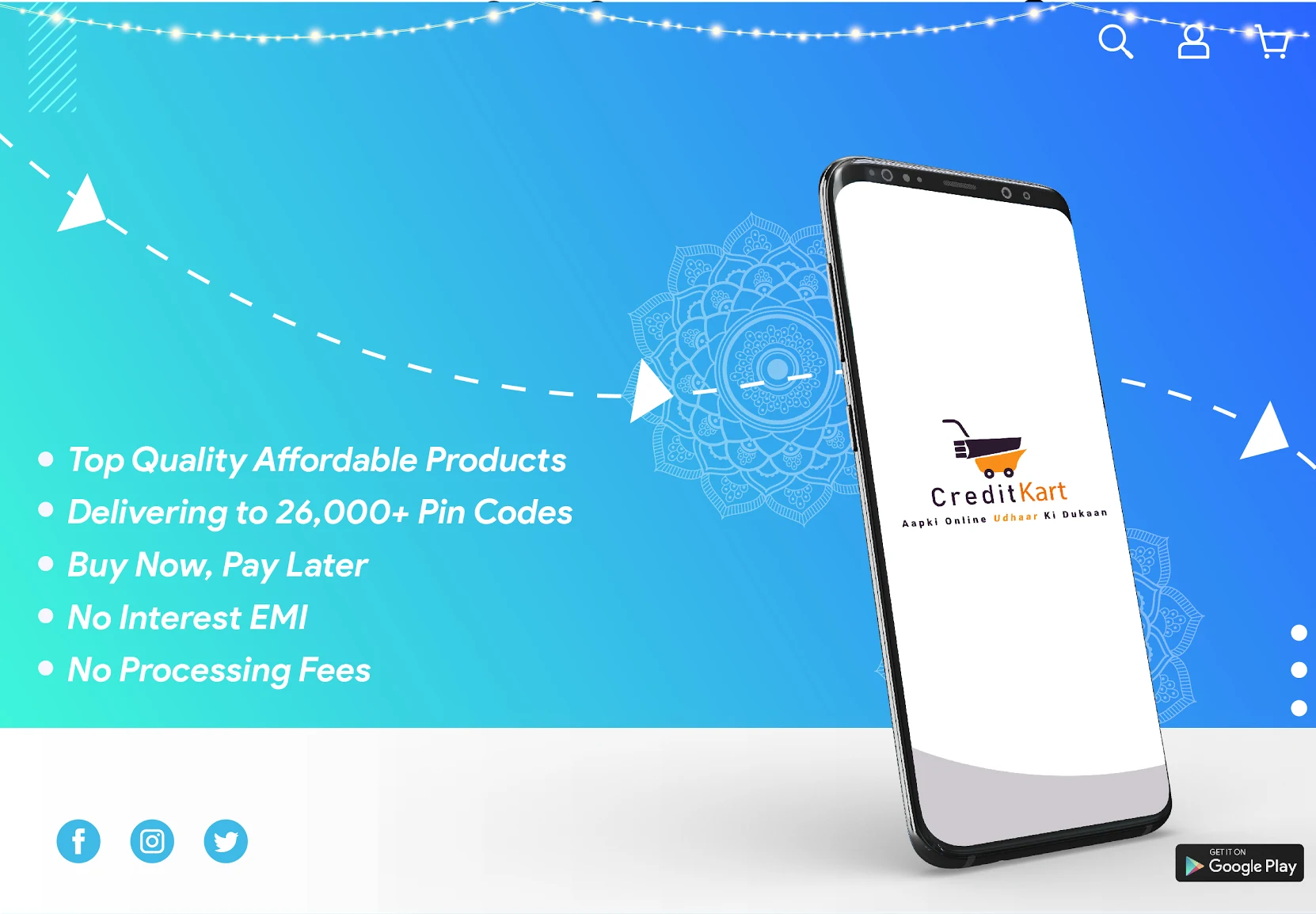 CreditKart is a shopping platform revolutionizing online shopping by introducing shoppers to a shopping experience like never before. Selling a variety of top quality products at very affordable prices, CreditKart assigns the shoppers a direct credit line and enables them “Buy Now, Pay Later”. From fashion to skincare and home decor to gadgets, we deliver happiness, Pan India over 25,000 Pin Codes.