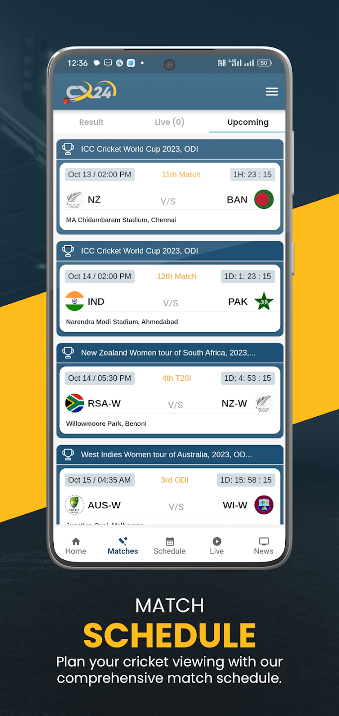 Cricx24 is your ultimate live-scoring app for cricket enthusiasts! Stay updated with live cricket scores, match facts, and news. Get real-time World Cup updates, access the scoreboard, and watch live TV. Predict match outcomes and receive fast match results. Download Cricx24 now for the most immersive cricket experience!