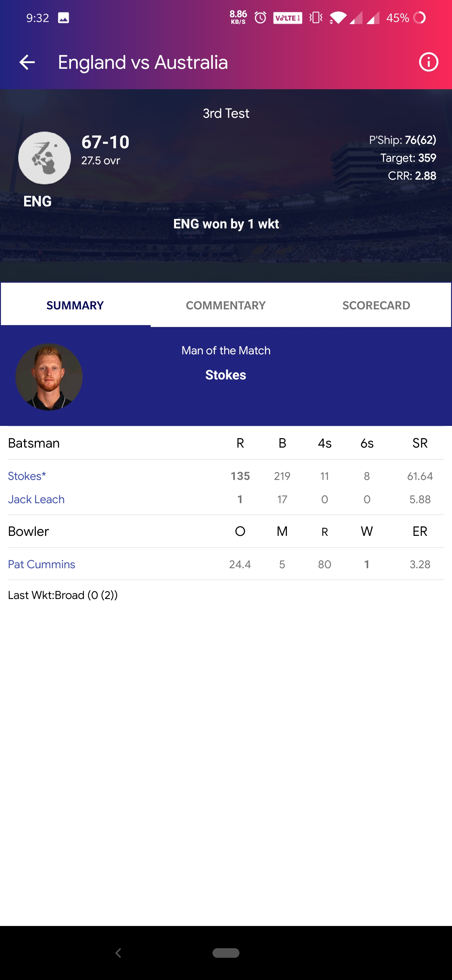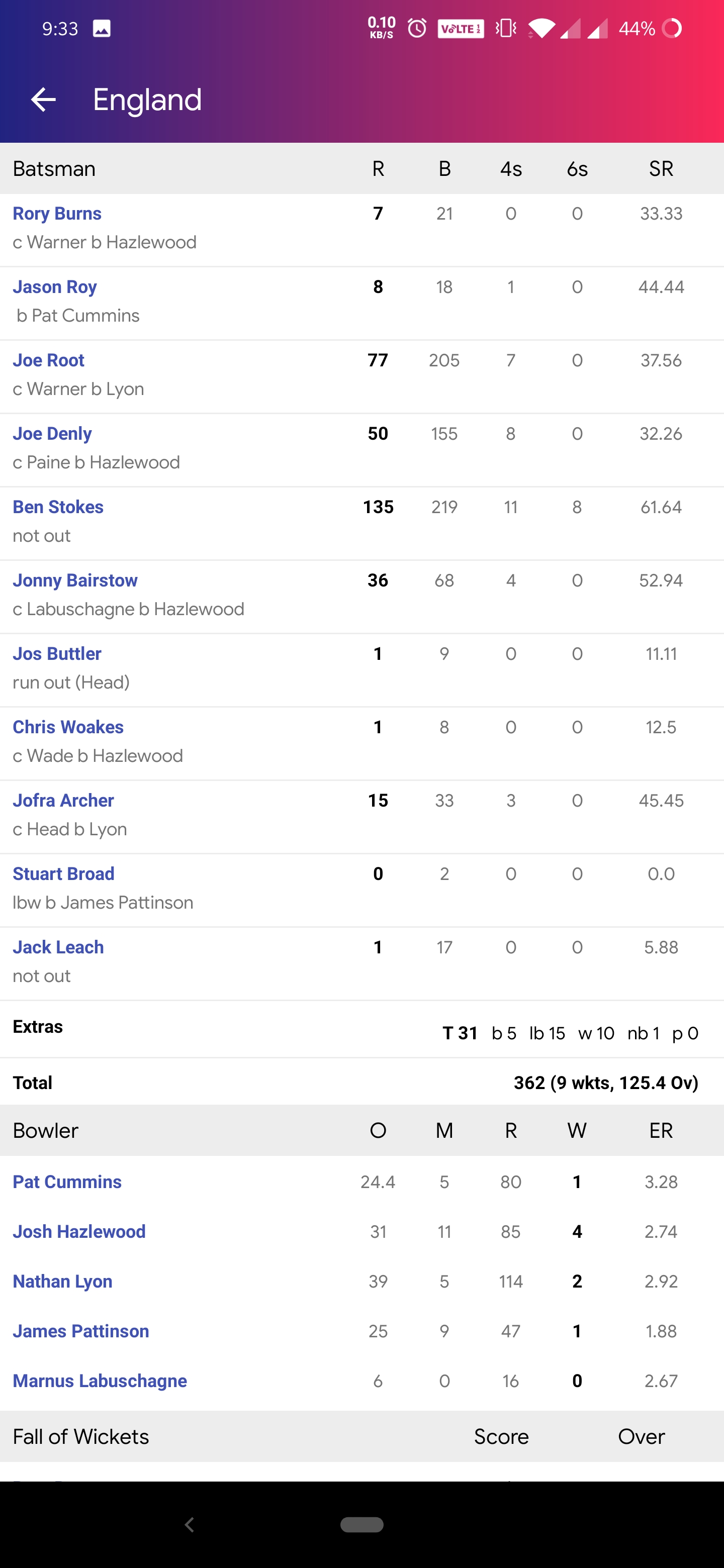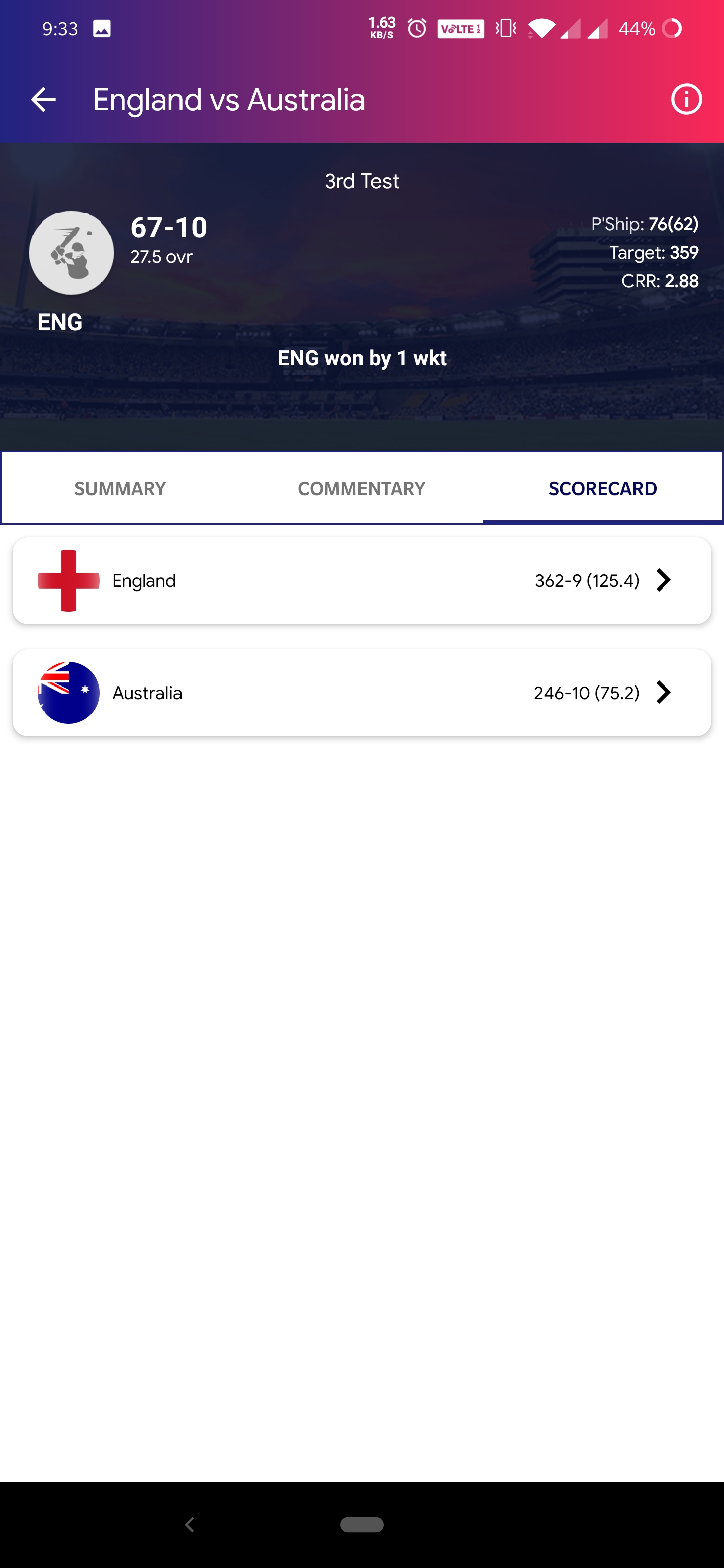 Full score card