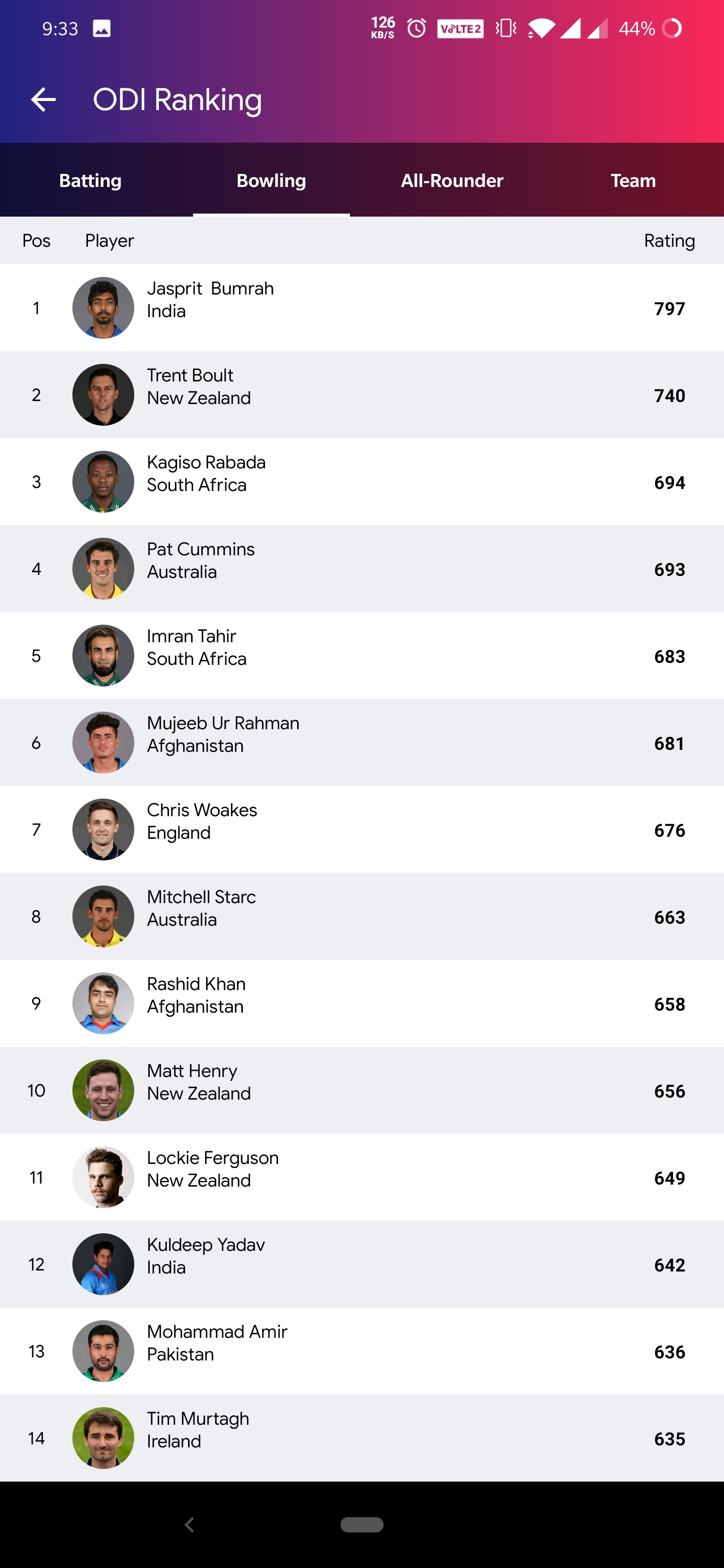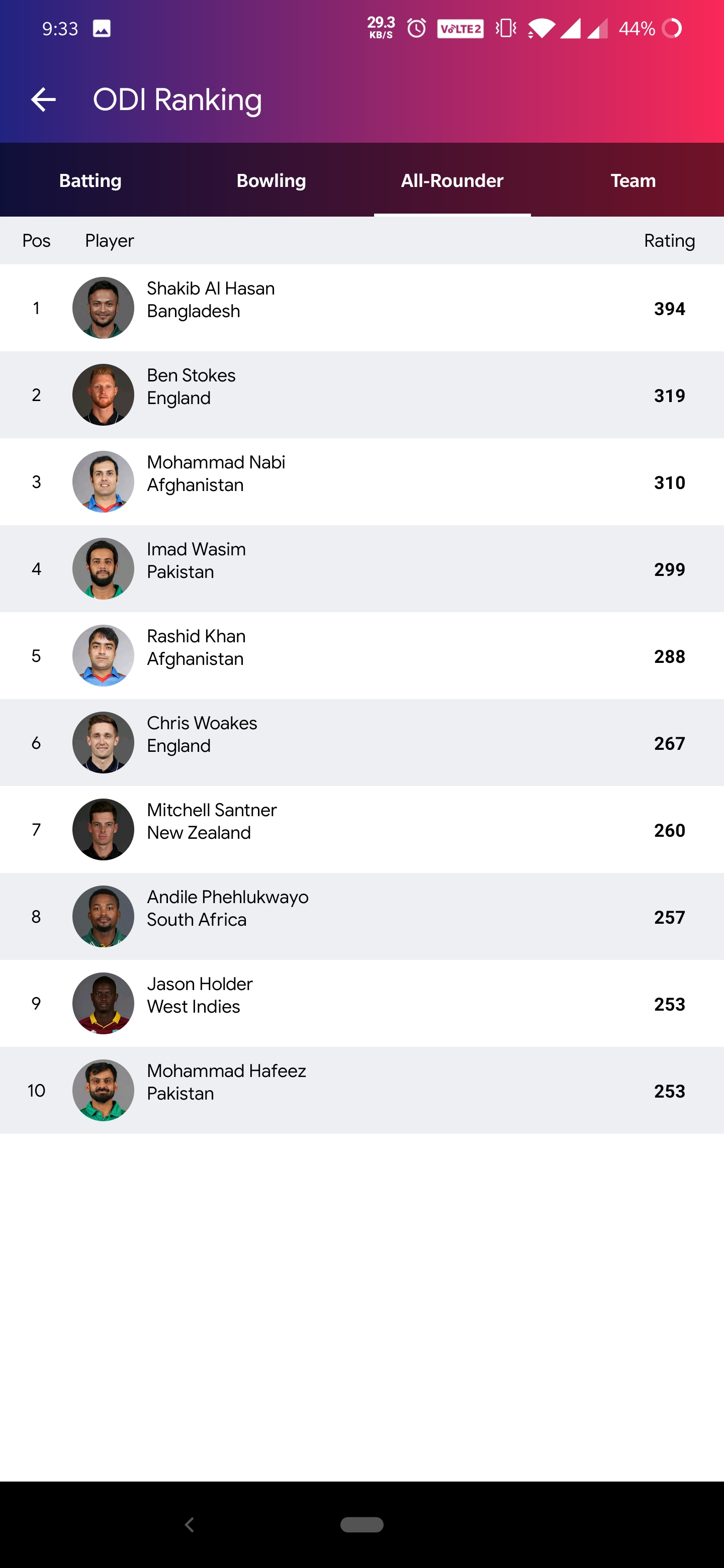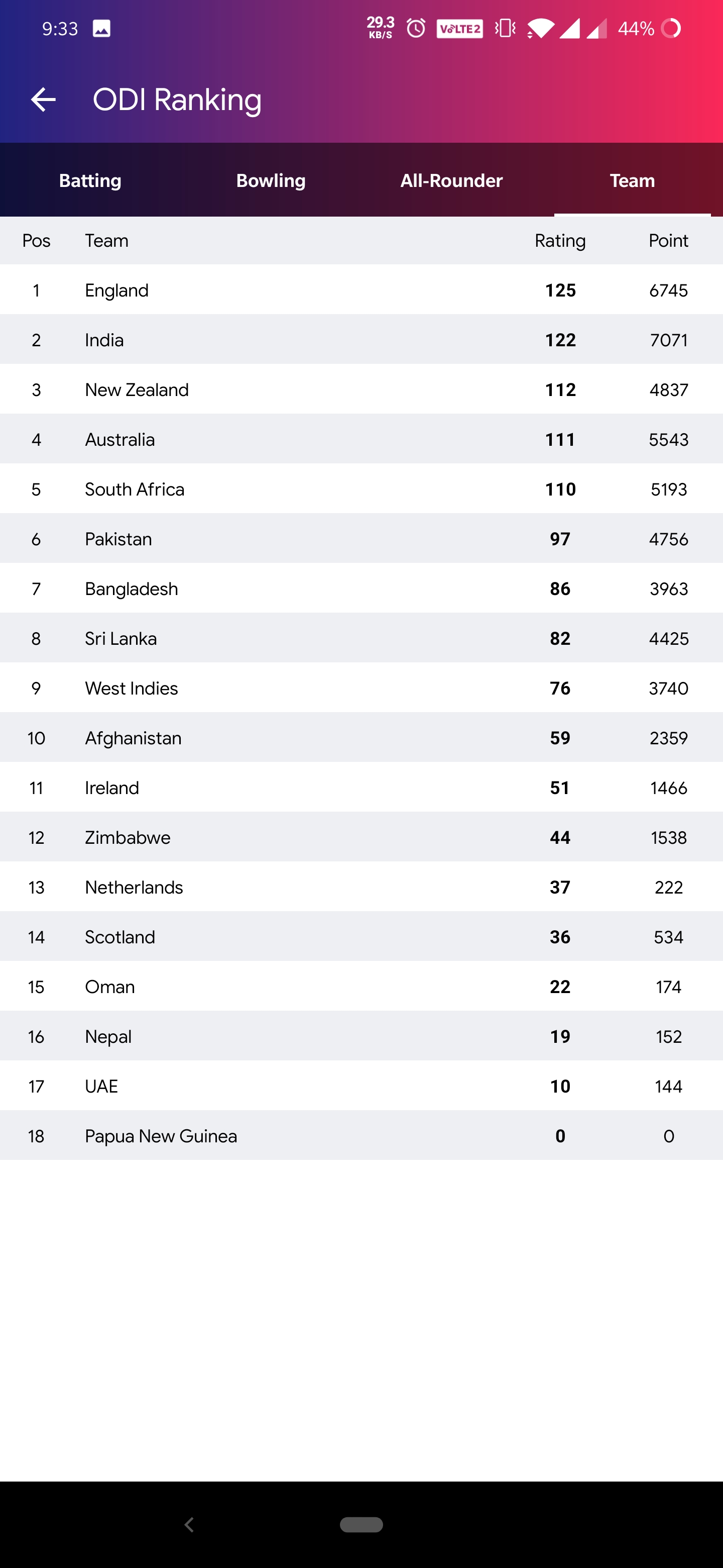 Full score card