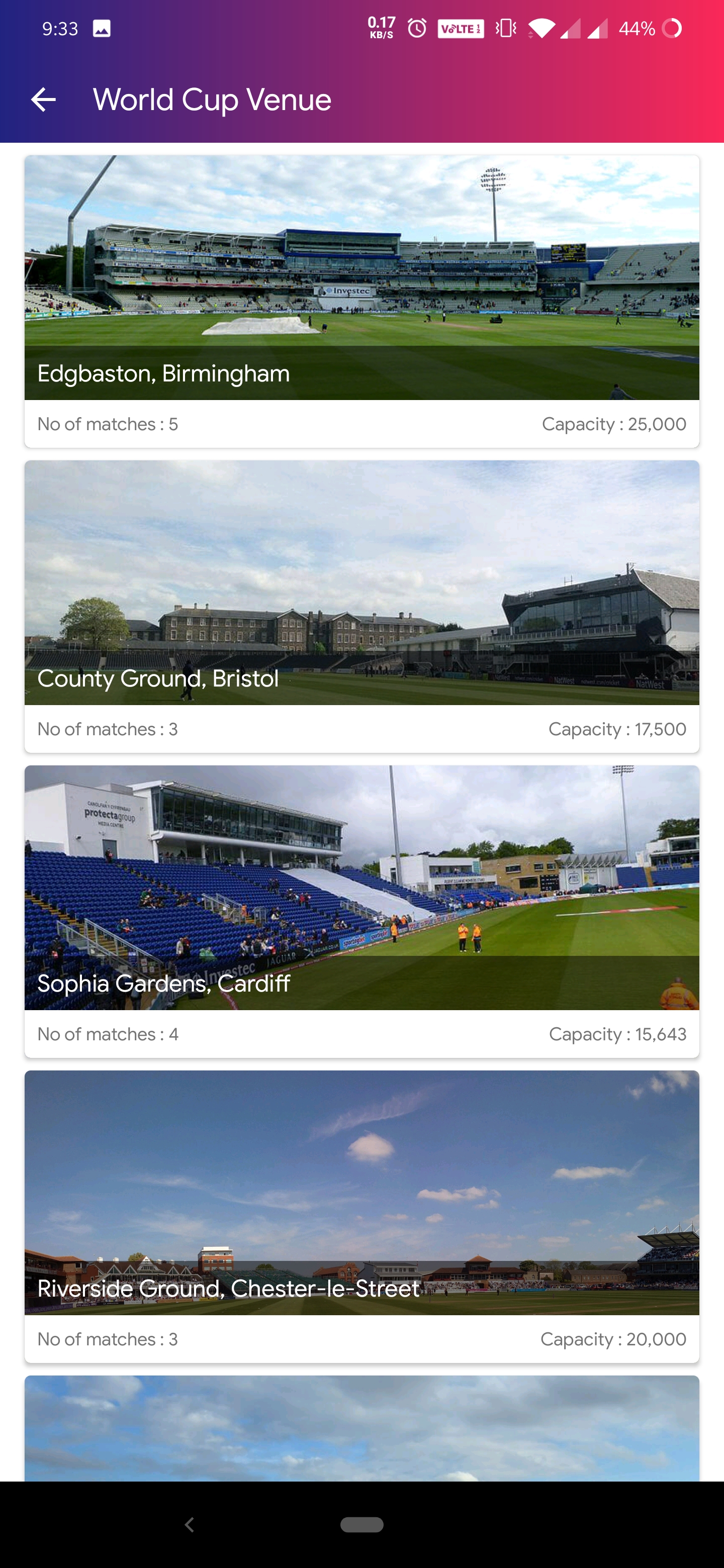 Detailed summary of current & upcoming matches