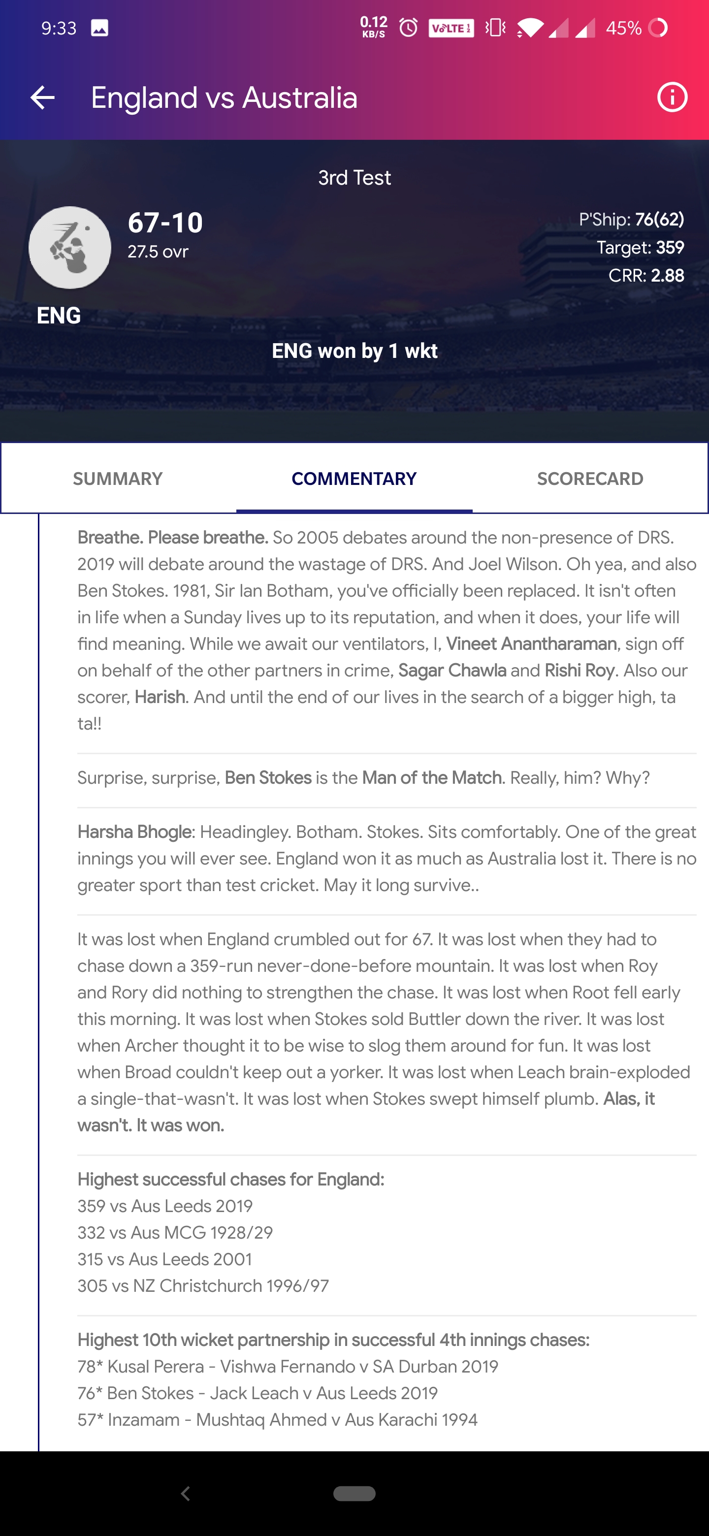 Live commentary for last 5 overs