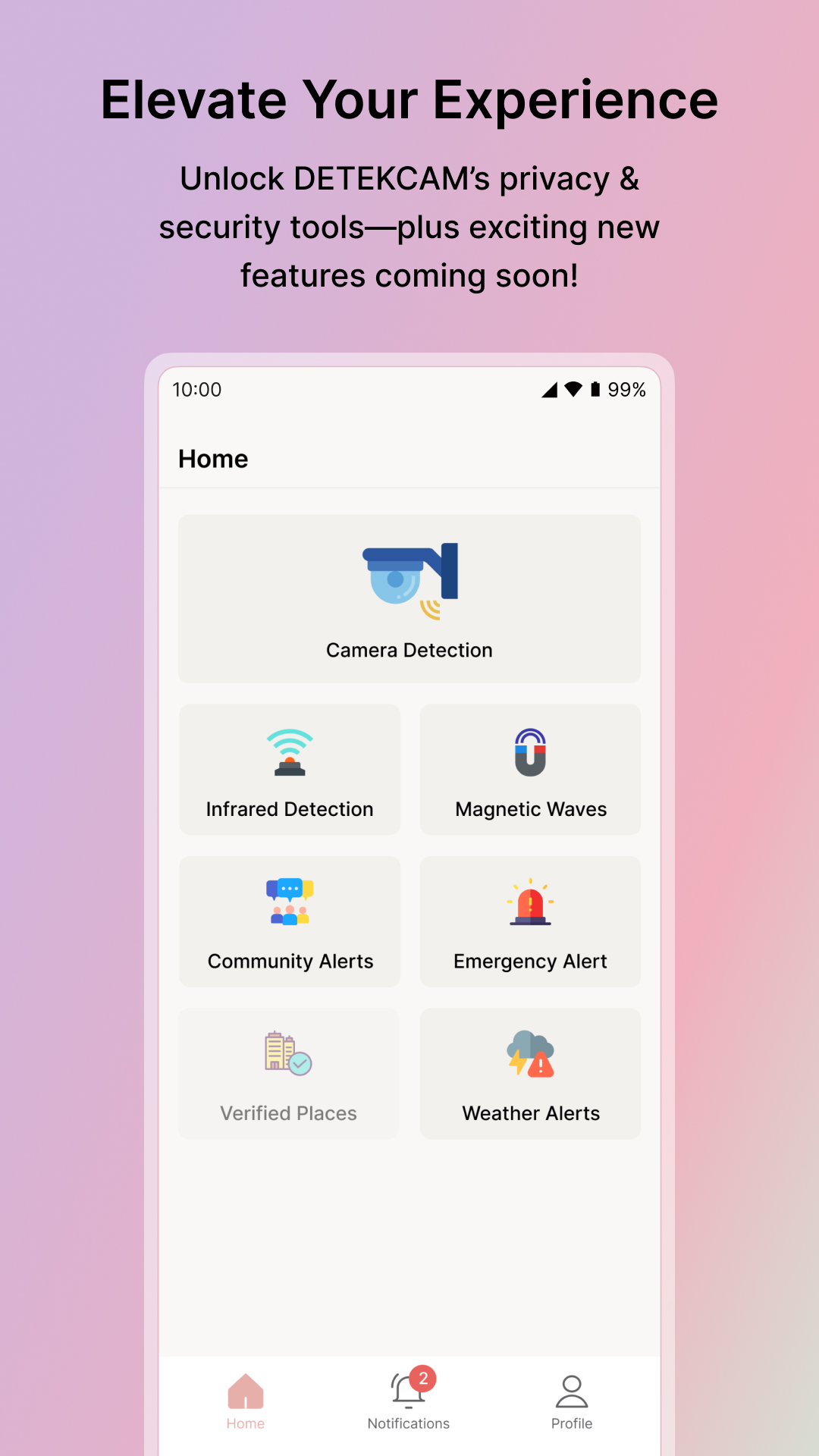 Real-Time Alerts – Receive instant notifications if hidden cameras are detected.