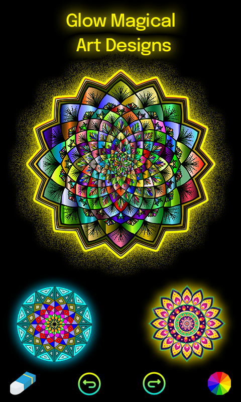 Save your created decorative motifs and glow art drawing in your gallery