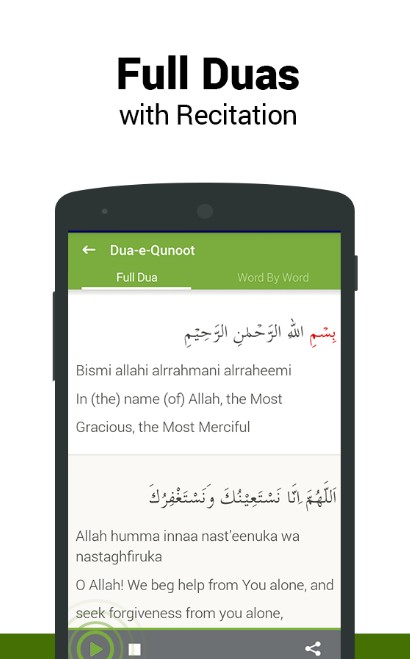 Dua e Qunoot is an all in one app in which Muslims can learn: Dua e Qunoot, Ayat ul Kursi, Last 15 Surahs of Quran, and 99 Names of Allah ( Asma ul Husna ), 6 Kalma & daily Islamic Duas with translation, transliteration, and audio recitation.