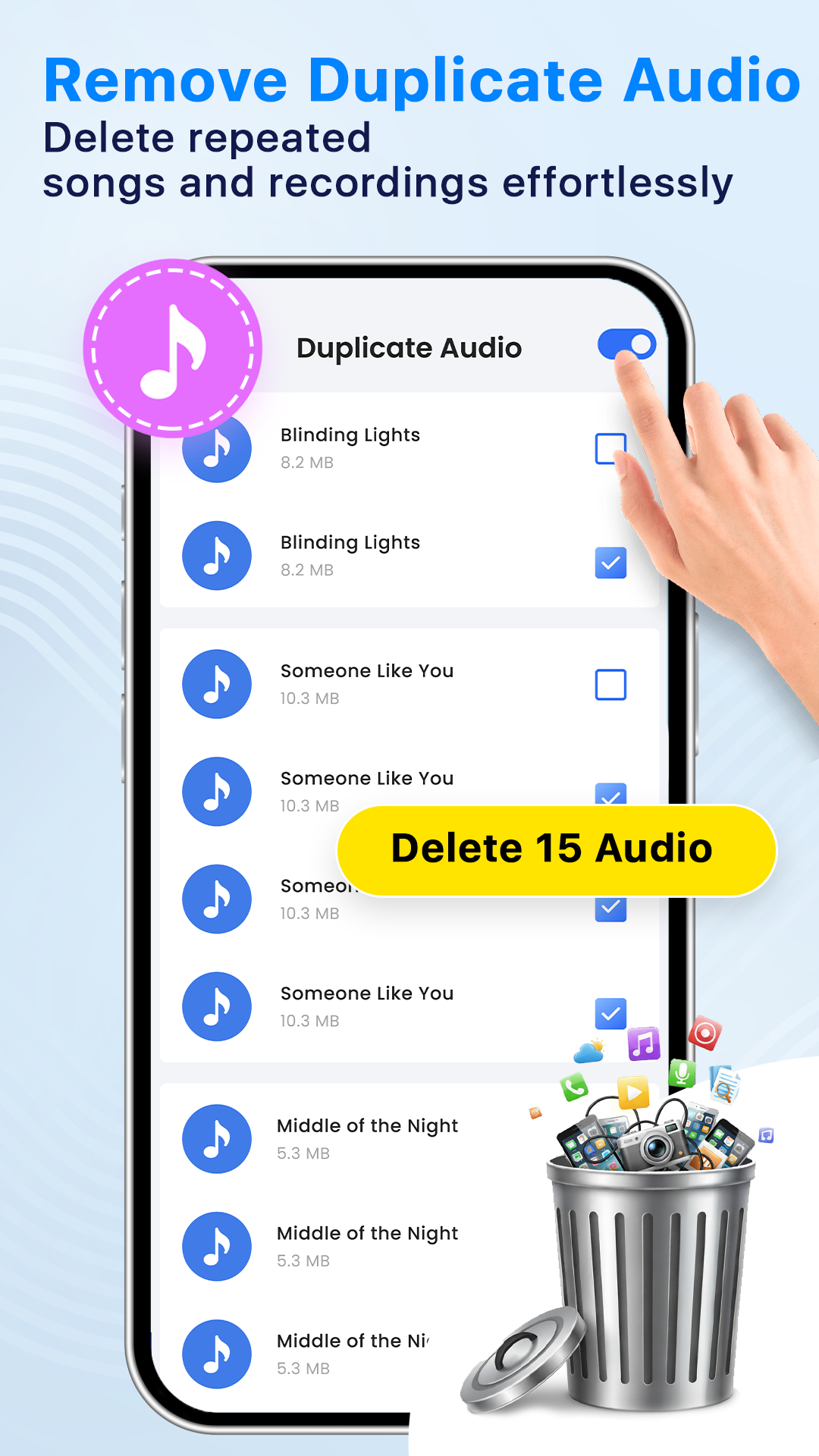 This option identifies multiple copies of songs, recordings, and audio clips saved unintentionally. It helps you keep your audio collection organized.