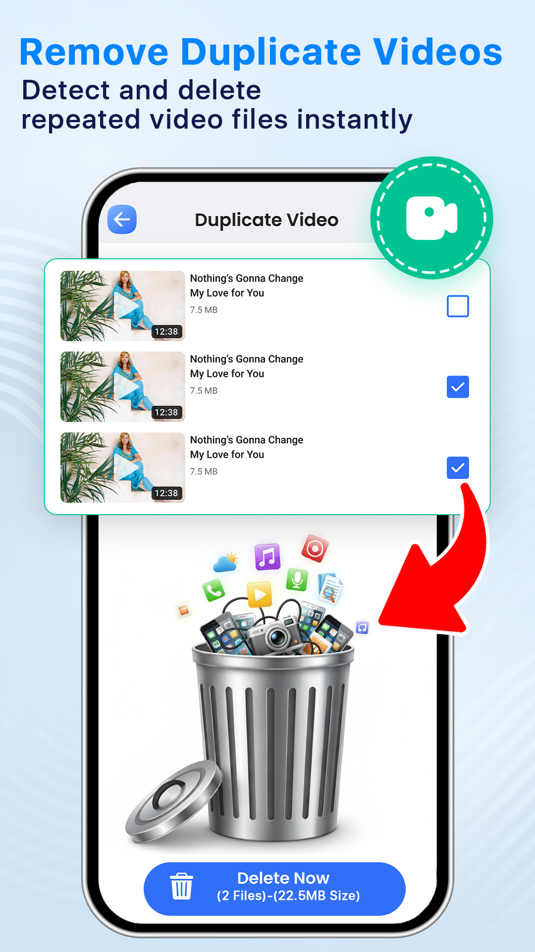 Large video files take up significant storage. This feature detects repeated video clips and shows them in a simple list so you can manage your media easily.