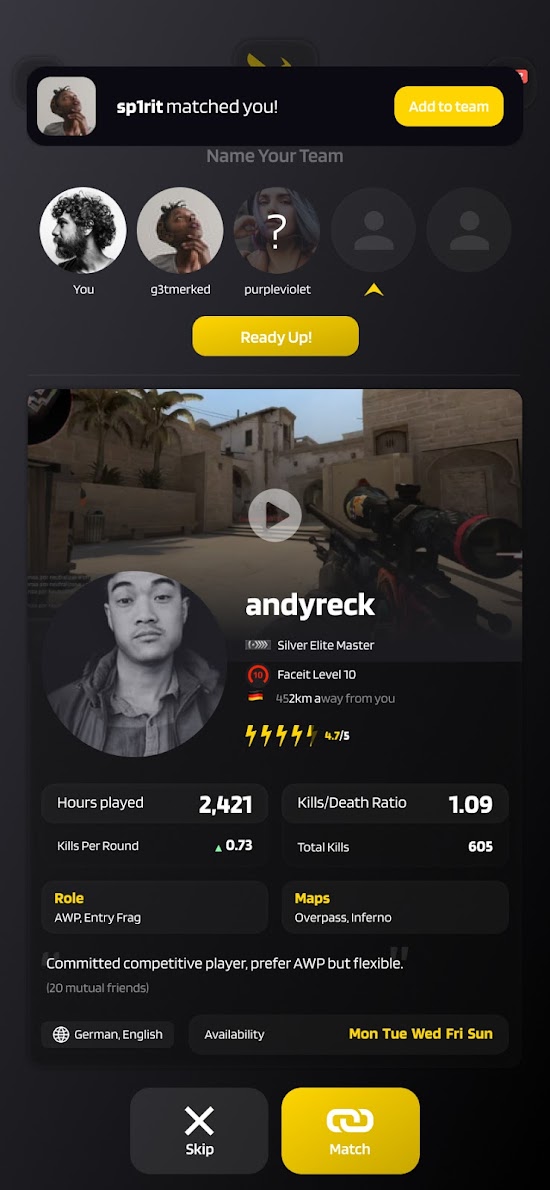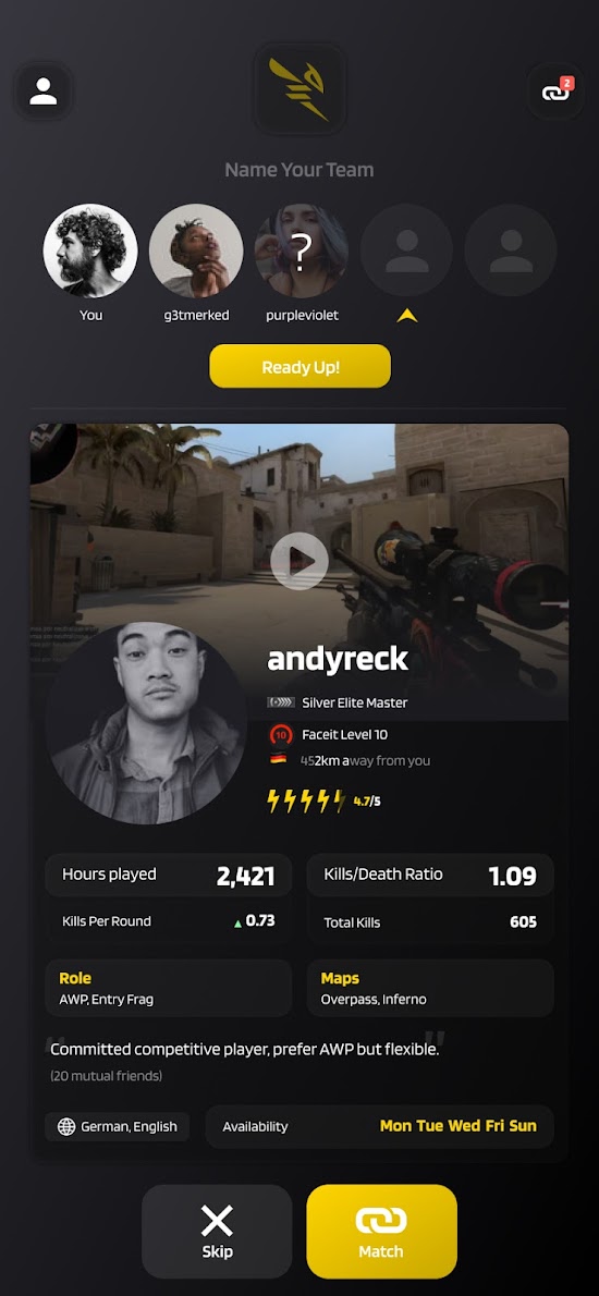 We believe there should be good teammates and fun conversations for every game session, and that should be available in seconds.