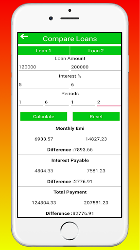- Compare Loans- This is an awesome feature in this EMI Calculator. You can calculate two loans at a time with outstanding results.