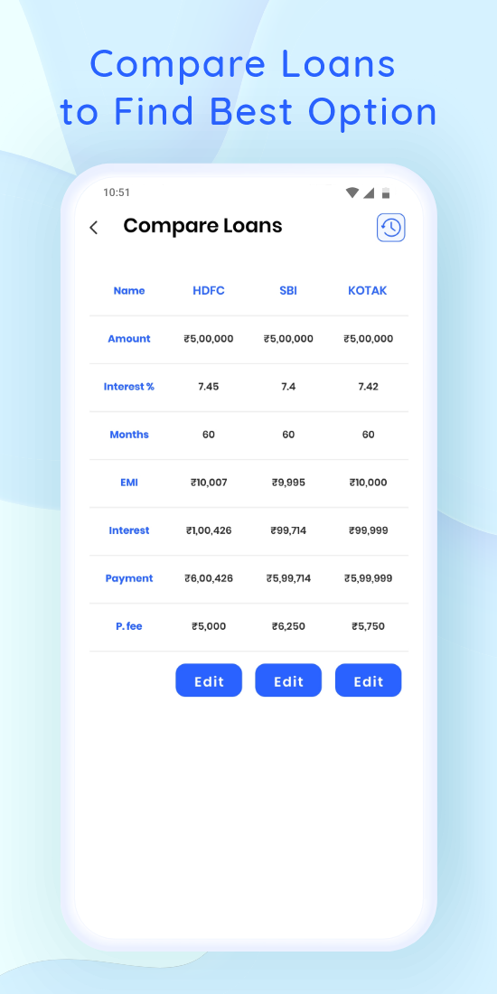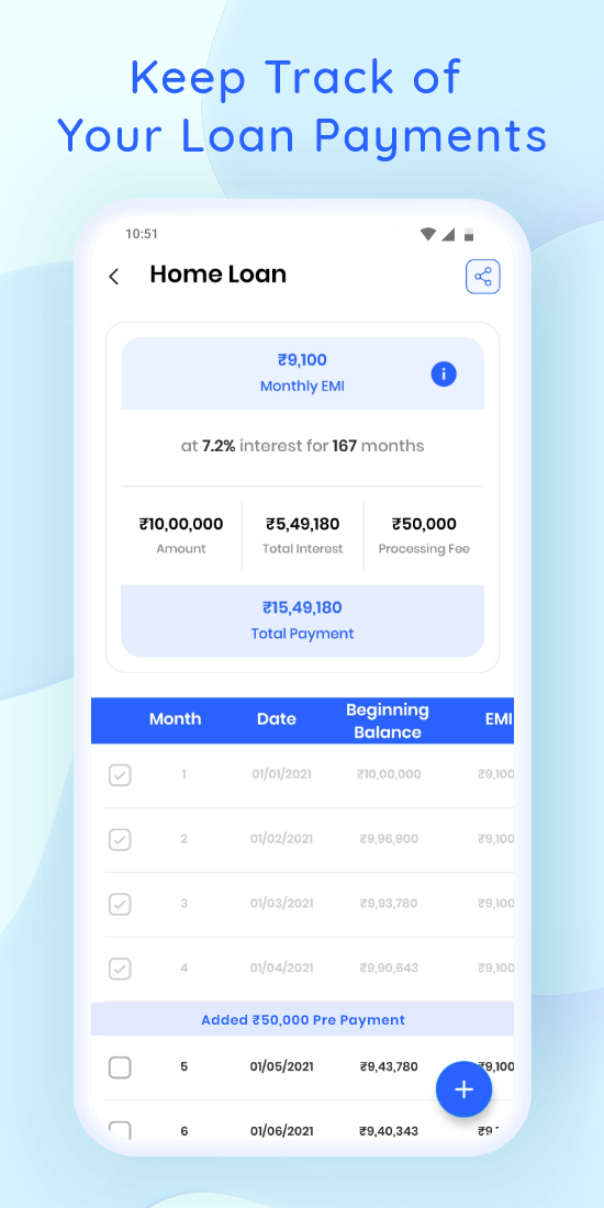 ~ Manage all different types of loans in one place in a comparative tabular format with the help of this mobile EMI app.