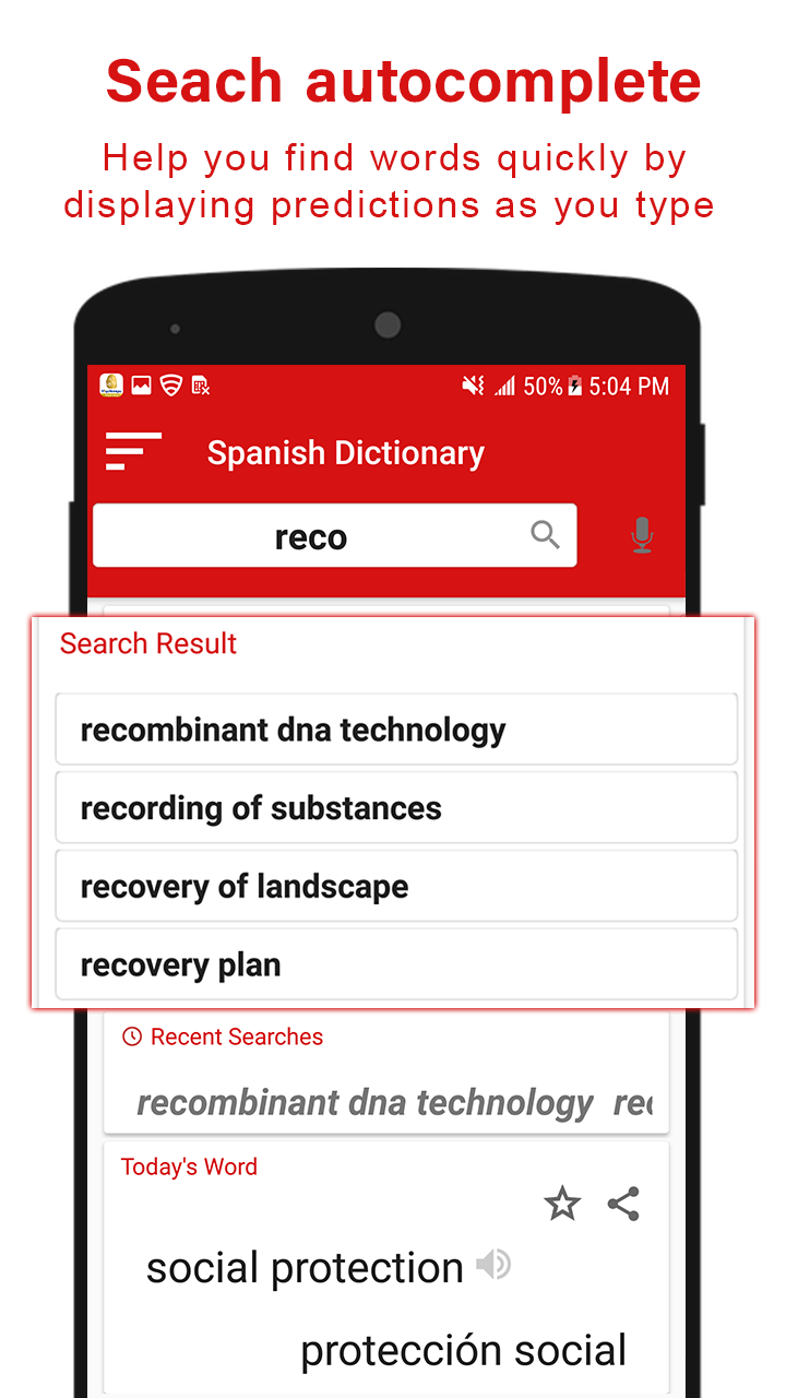 This English to Spanish dictionary app offline free provides following Online Dictionary & Offline Dictionary: