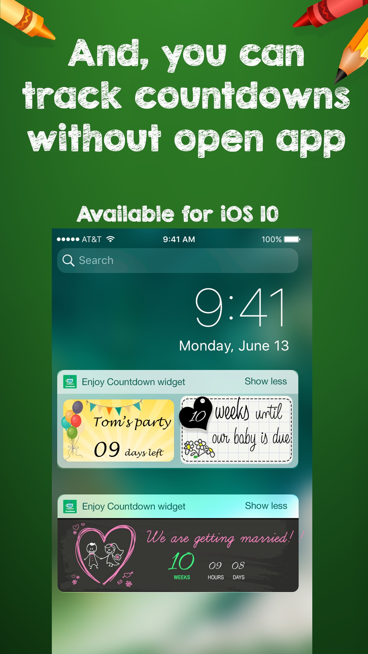 Now, ‘Enjoy Countdown widget’ is totally different from other countdown widgets. Unlike other apps which show only boring white text and numbers, this app focuses into personalizing your countdown event with templates, colors, font and images. You can design your own countdown, paste it on to the wall and share it to your friends. This app is also strongly designed for iOS 10, which comes with best widget design.