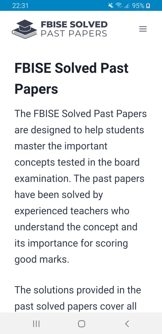 The FBISE Solved Past Papers are designed to help students master the important concepts tested in the board examination. The past papers have been solved by experienced teachers who understand the concept and its importance for scoring good marks.